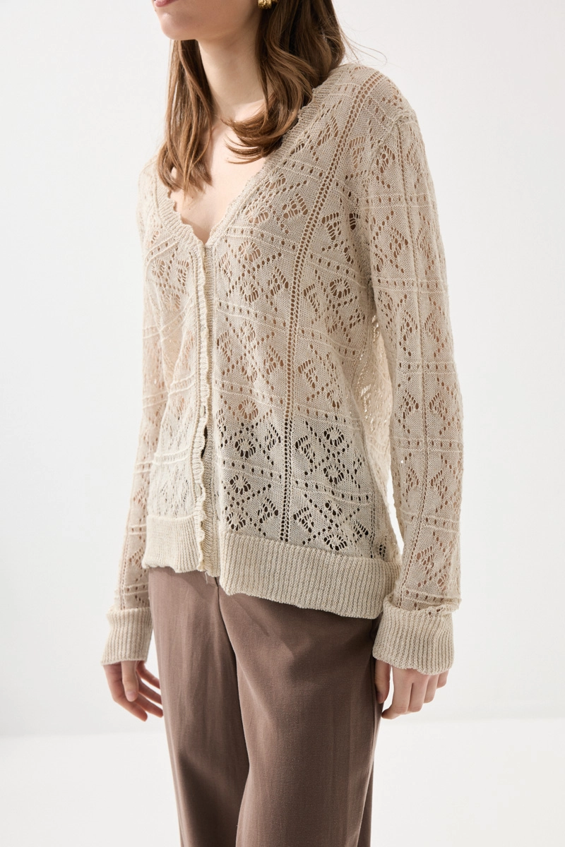 Ajurlu triko dokusuyla zarif ve şık bir görünüm sunan bu kısa kollu hırka, hafif yapısıyla konforlu bir kullanım sağlar. Nefes alabilen yapısı sayesinde gün boyu ferahlık sunar. Katmanlı kombinler için ideal olan bu parça, hem günlük hem de şık stillere uyum sağlar. Yumuşak dokusu ile ciltte hoş bir his bırakır. Gardırobunuzun tamamlayıcı parçalarından biri olmaya adaydır.