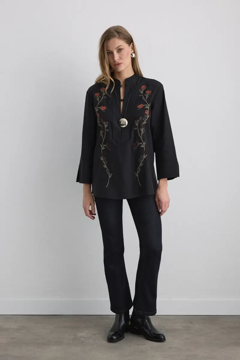 A unique design highlighted by handcrafted embroidery details. The viscose-blend texture provides comfort, while the black tone emphasizes elegance. A special piece reflecting Gusto’s artistic touch.