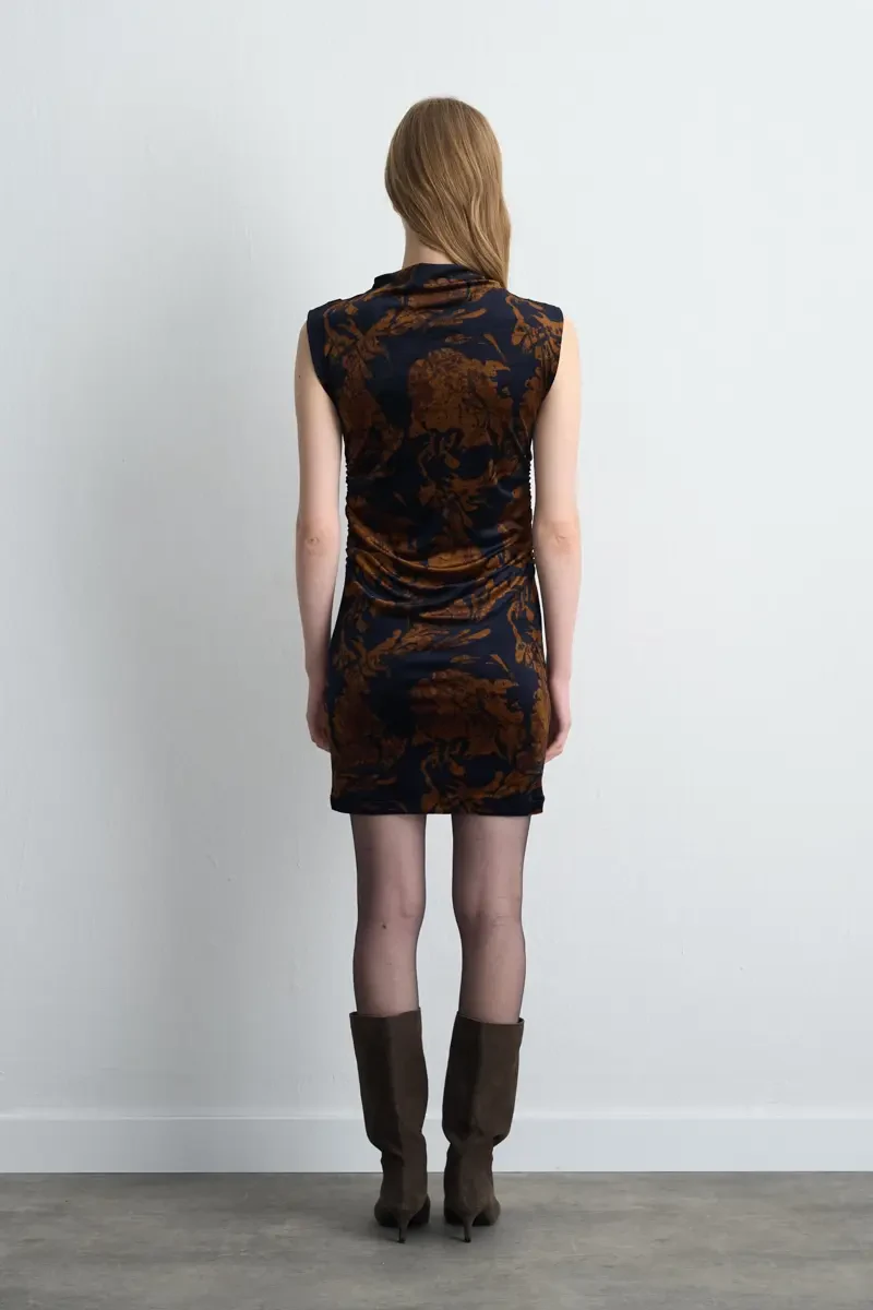 Attracts attention with the unique patterns of the Anka Collection. Velvet fabric adds a shimmering and luxurious look. The mini length provides modern dynamism. The navy tone creates a noble and elegant presence. Easily stands out in daily or event outfits.