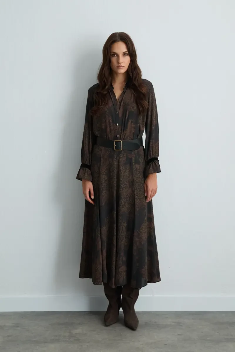 Featuring a velvet texture and a sophisticated brown tone, the shirt gains a classic touch with its collared design. It can be paired with both trousers and skirts, making it suitable for work or formal gatherings. Its soft fabric ensures comfortable wear.
