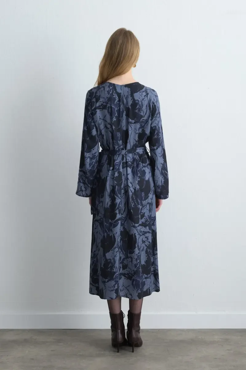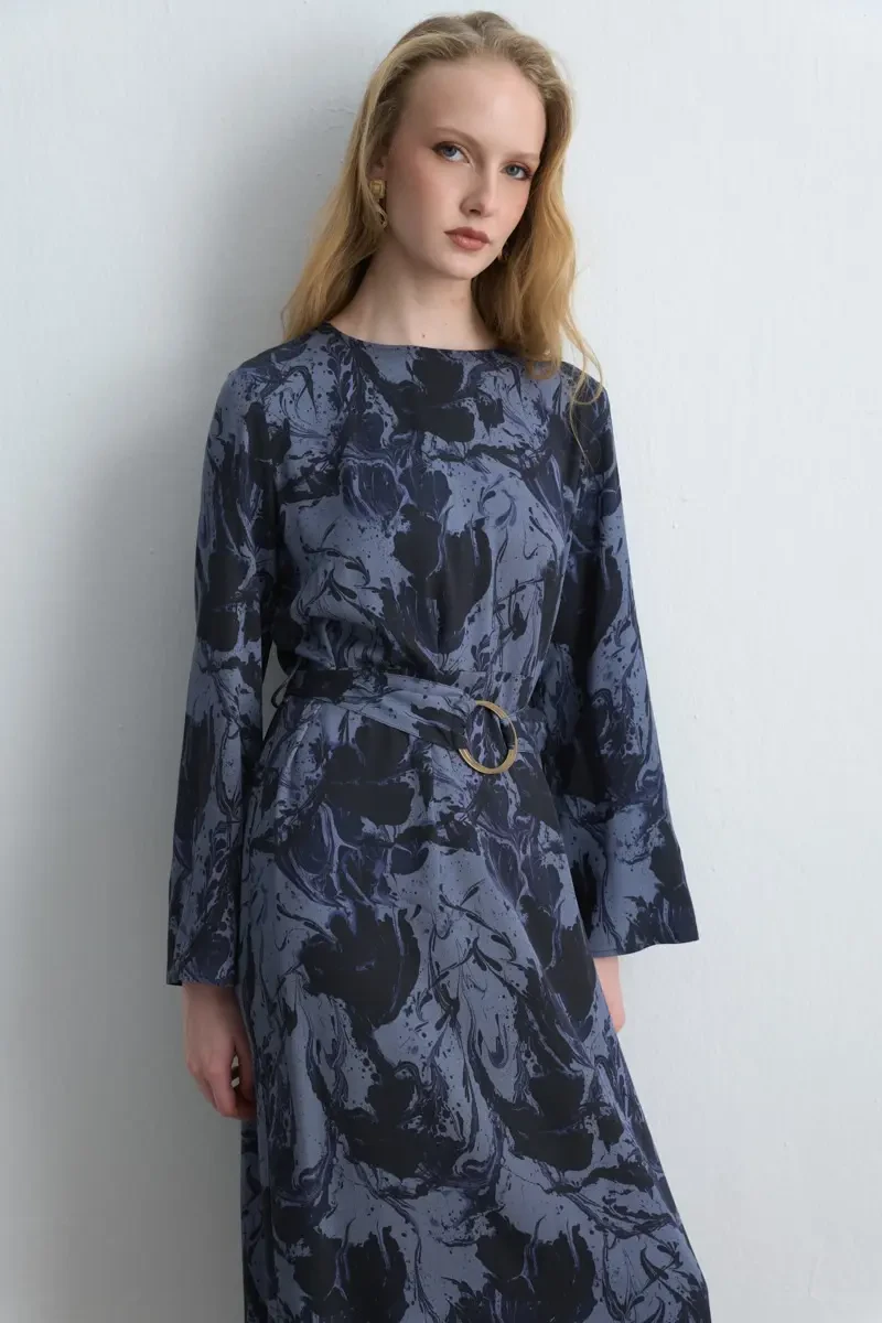 Anka Collection Patterned Viscose Dress - Navy Blue