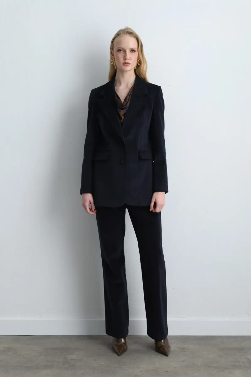 Anka Koleksiyonu Fitilli Kadife Blazer Ceket & Boru Paça Pantolon - Lacivert Takım