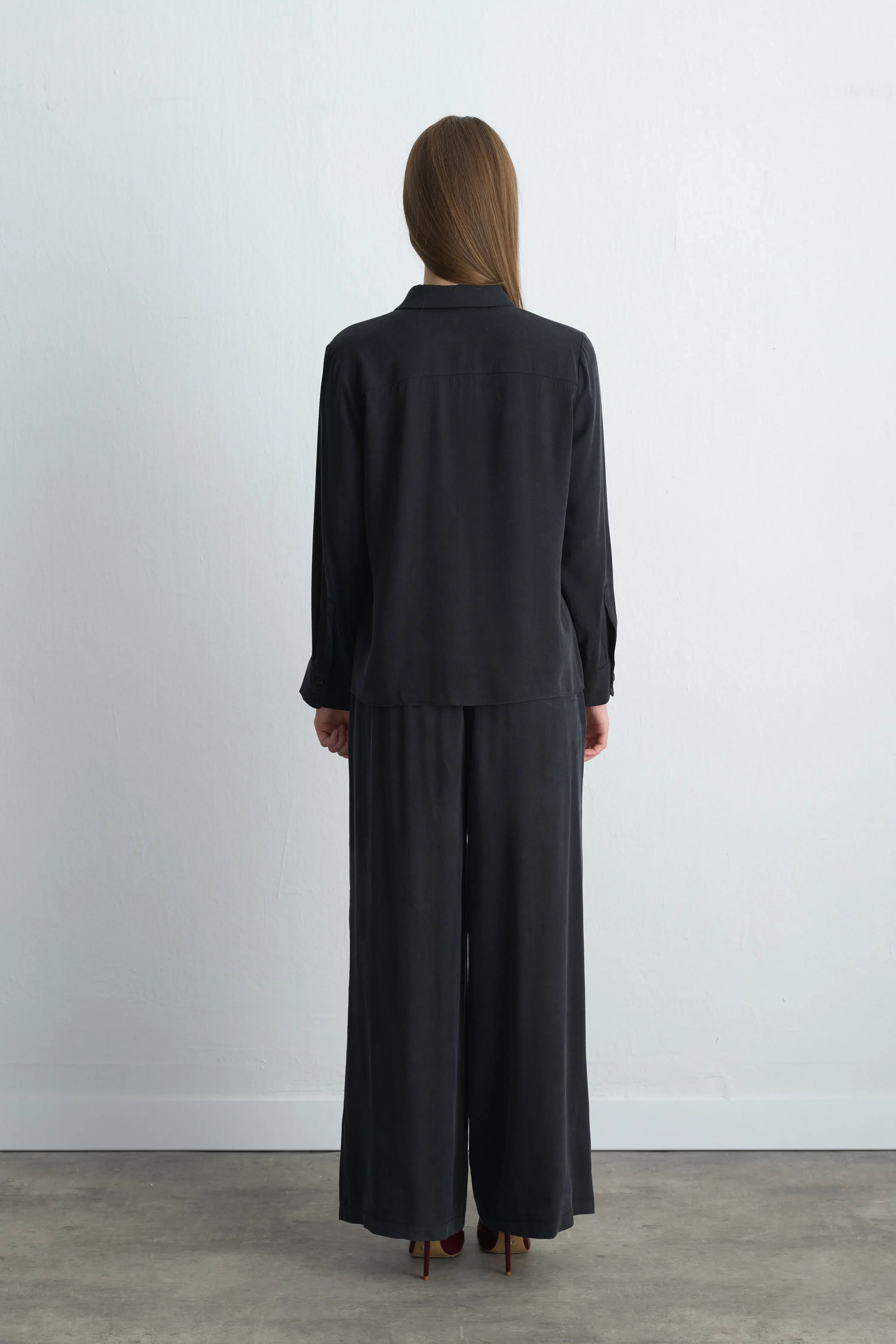 Anka Koleksiyonu Lyocell Gömlek & Bol Paça Pantolon - Siyah Takım