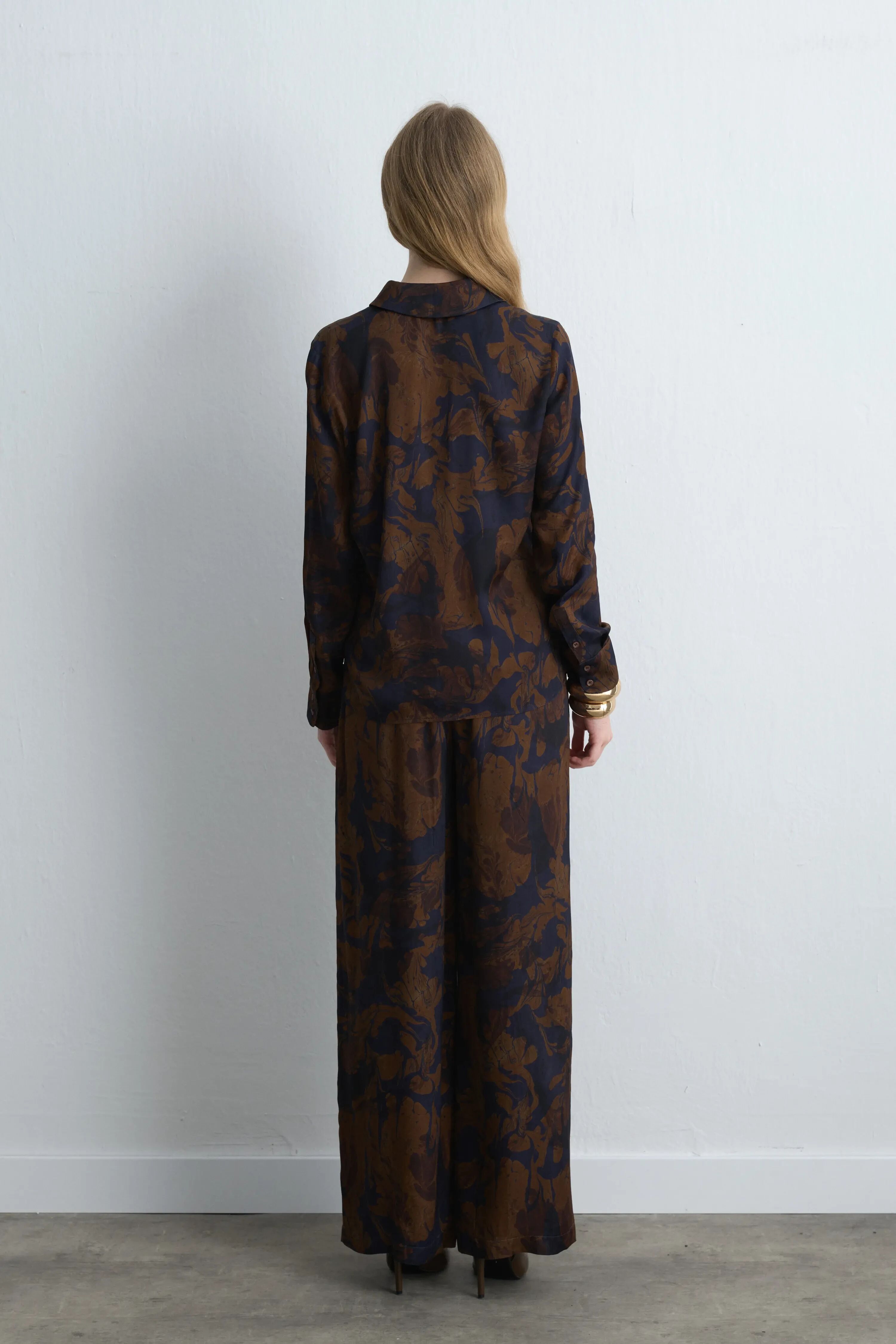 Anka Koleksiyonu Viskon Saten Gömlek & Bol Paça Viskon Pantolon - Kahverengi Takım