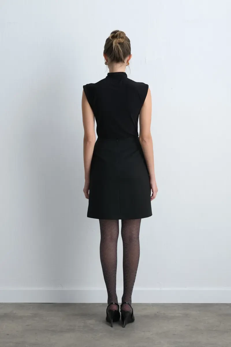 Dinamik ve modern bir tarza sahip olan siyah anvelop mini etek, şehirli şıklığın anahtar parçalarındandır. Hem şık bluzlarla hem de basic tişörtlerle kolayca kombinlenebilir. Feminen kesimi sayesinde zamansız bir stil sunar.