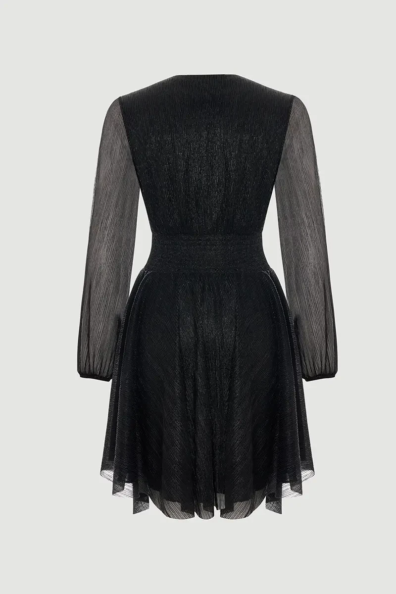 Anvelop kesim feminen ve zarif bir siluet sunuyor. Pırıltılı yüzeyi özel davetlerde dikkat çekiyor. Siyah tonu klasik ve sofistike bir görünüm sağlıyor. Akıcı yapısı şıklığı ön plana çıkarıyor. Özel akşamlar için ideal bir tercih oluyor. Zarif detayları stilin gücünü artırıyor.
