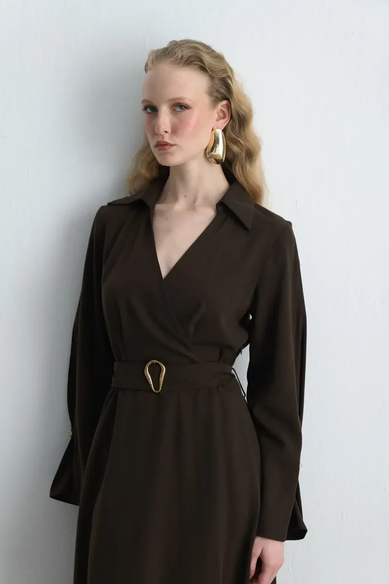 Doğal lyocell kumaşıyla nefes alabilir yapıdadır. Anvelop kesim, zarif bir silüet oluştururken rahatlığı da ön planda tutar. Kahverengi tonu natürel ve şık bir görünüm sağlar. Günlük şıklıktan davetlere kadar geniş bir kullanım alanı sunar.