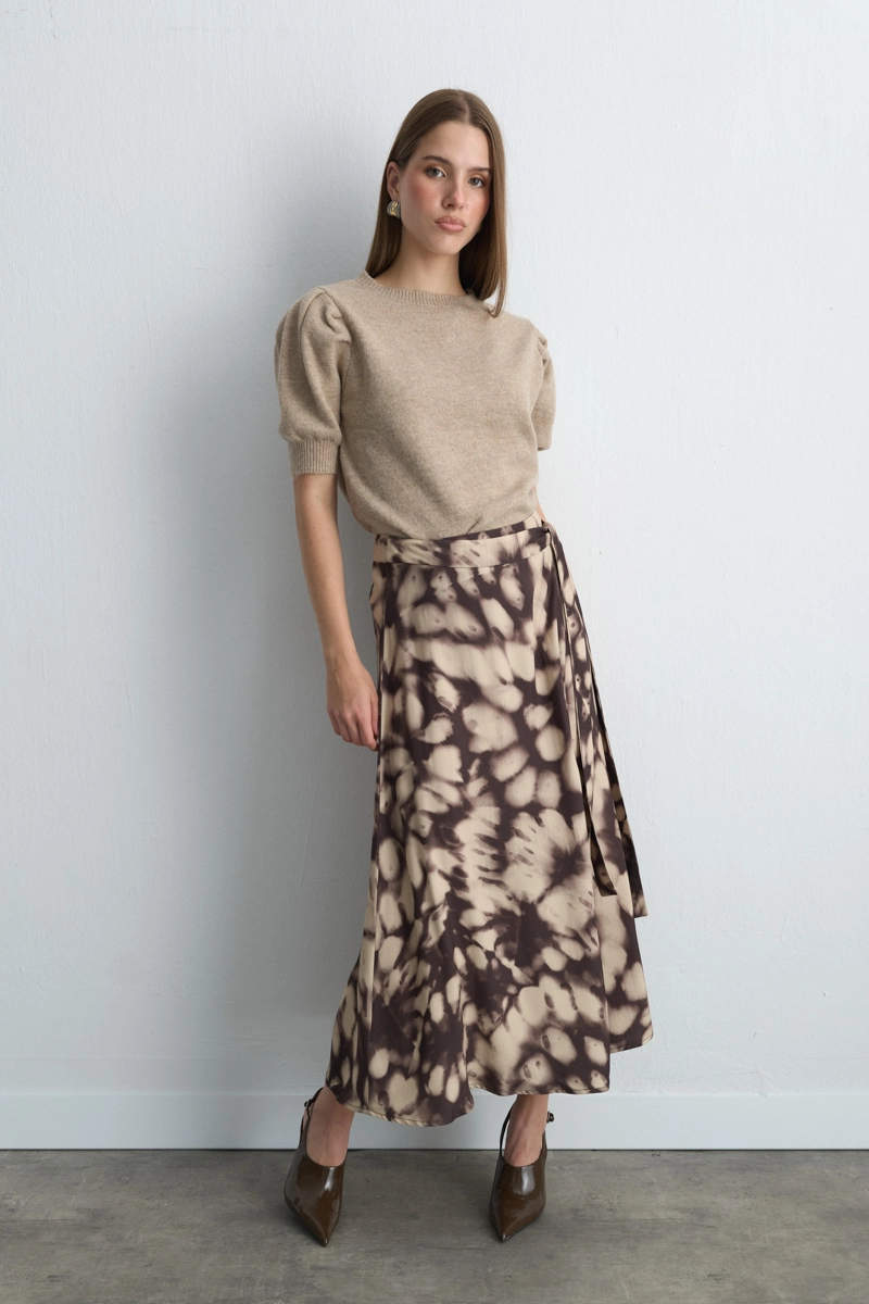 Anvelop formu feminen bir şıklık kazandırır. Viskon kumaşı hafif yapısıyla konfor sunar. Kahverengi tonu doğal bir zarafet oluşturur. Günlük kombinlerden akşam buluşmalarına kadar çok yönlü kullanılabilir.