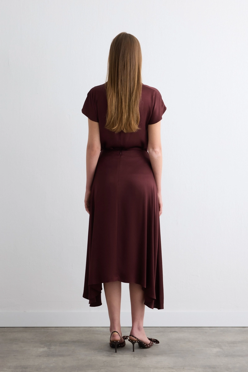 Canlı rengi şıklığınızı ön plana çıkarır. Asimetrik formu özgün bir hava sunar. Saten dokusu akıcı bir duruş kazandırır. Hem sade hem iddialı kombinlere uyarlanabilir. Özel günler için ideal bir seçenektir.