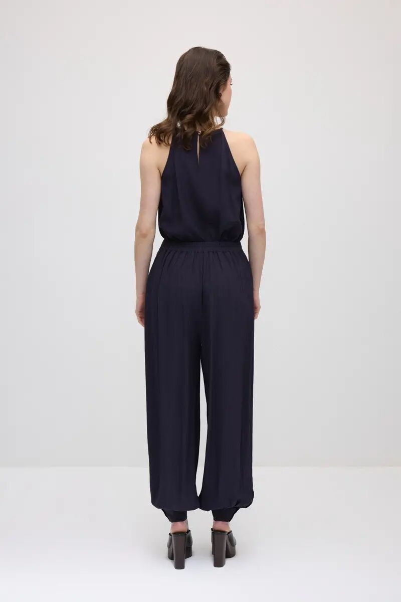 Askılı Anvelop Kesim Viskon Bluz & Balon Kesim Şalvar Pantolon Takım- Lacivert
