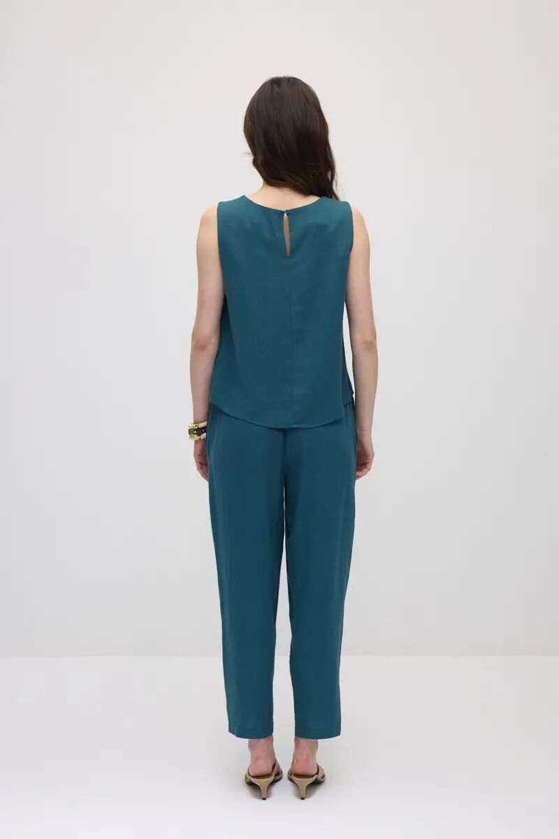 Atlet Bluz & Beli Lastikli Havuç Kesim Keten Pantolon Takım - Yeşil