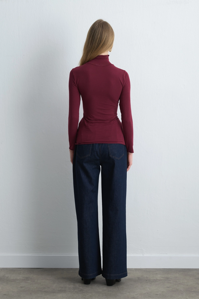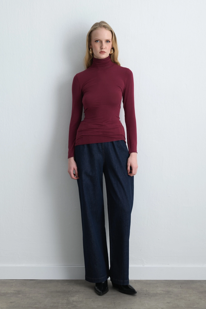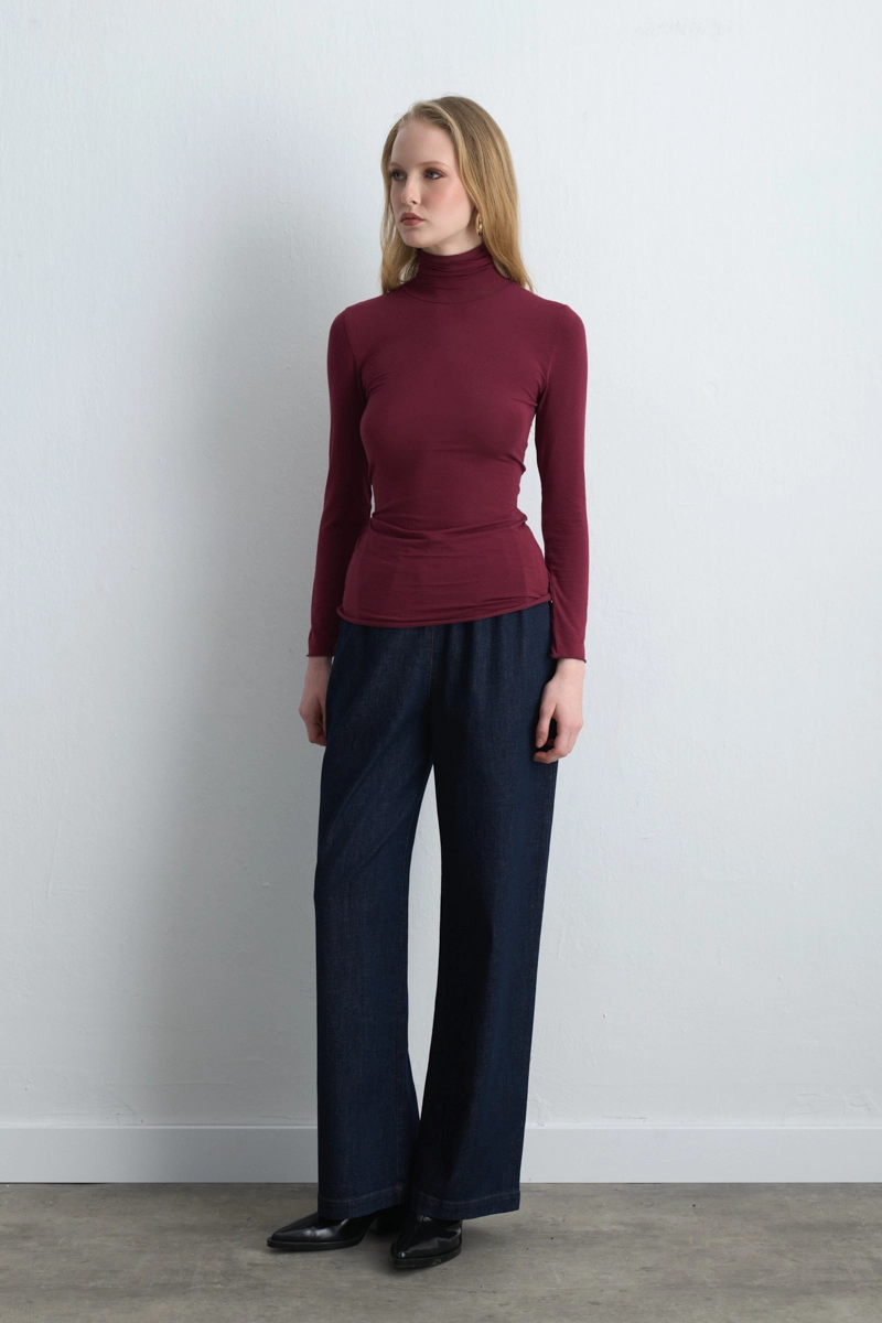 Kaşmir dokusuyla lüks bir konfor sunan bu bluz, bordo rengiyle stilinize sofistike bir dokunuş katar. Yumuşak yapısı sayesinde gün boyu rahat kullanım sağlar. Hem iş hem de günlük kombinlerde şık bir temel parça olarak öne çıkar. Minimal takılarla tamamlandığında modern ve zarif bir görünüm yaratır.