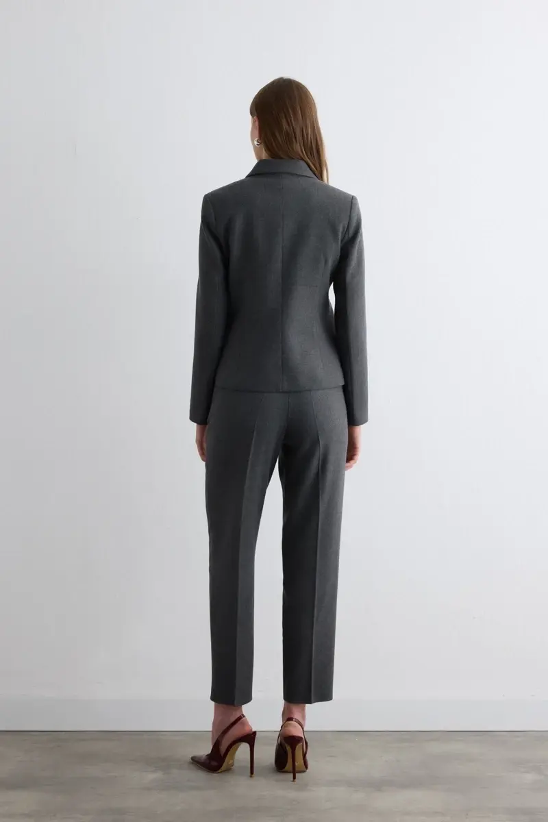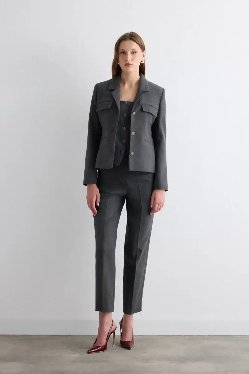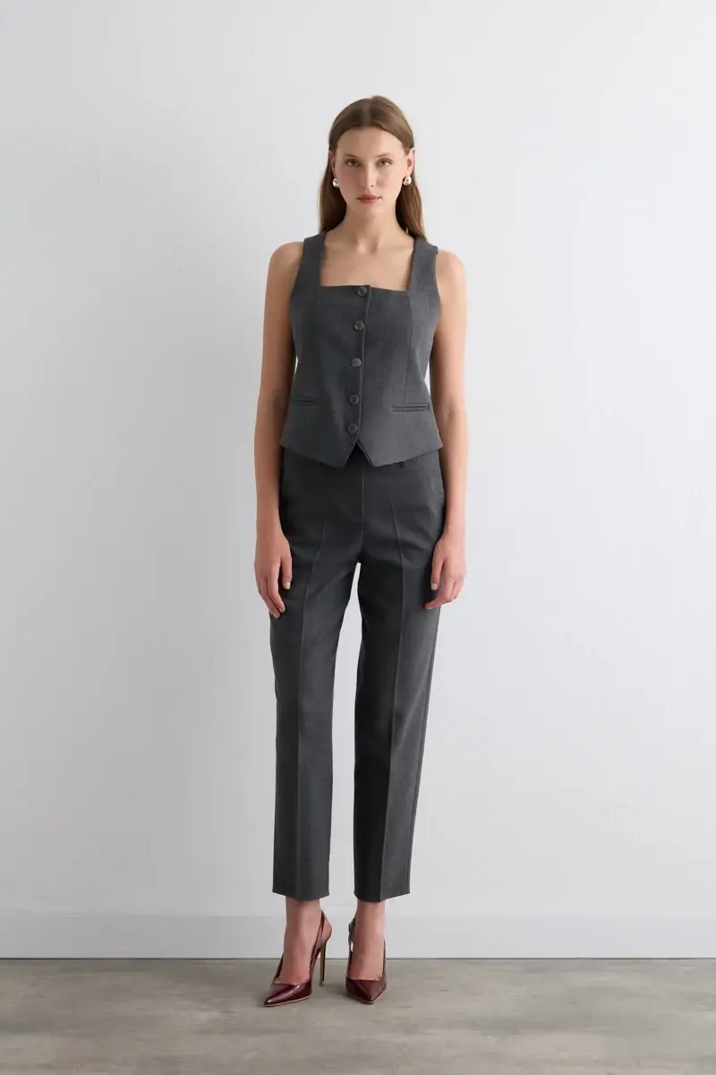 Herringbone Vest with Belted Cigarette Pants - Grey