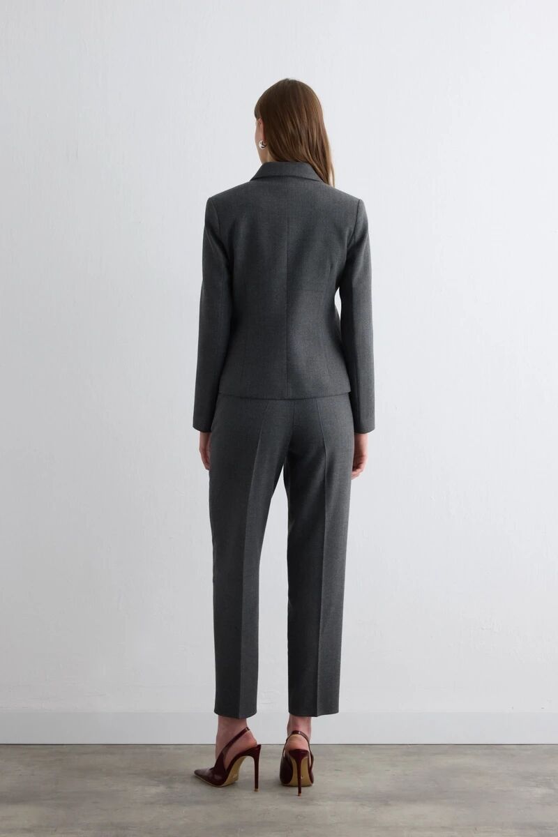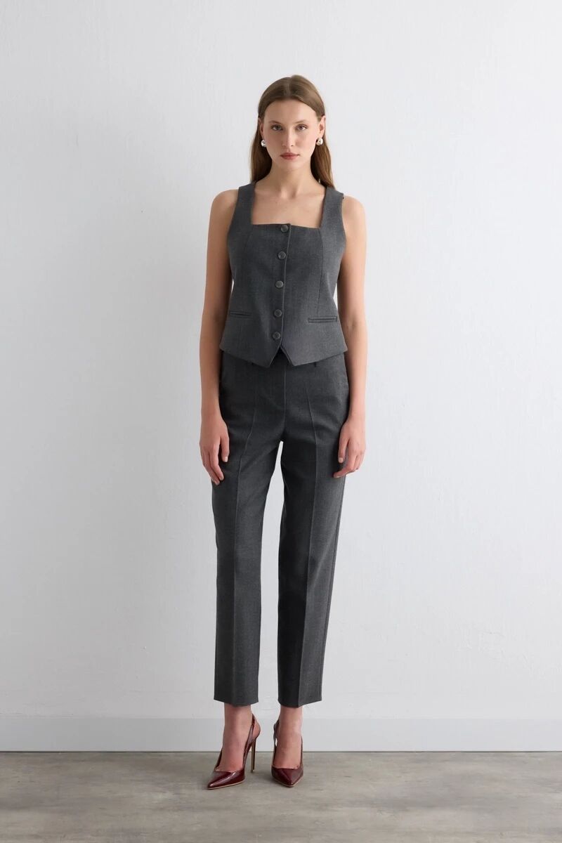 Balıksırtı Ceket Yelek & Kemerli Sigaret Pantolon - Gri Takım