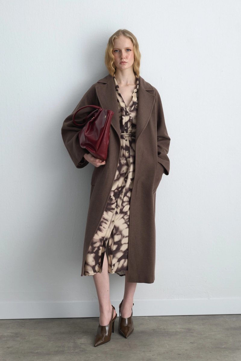 Balon kol detayı romantik bir hava katar. Viskon dokusu hafif ve konforlu bir kullanım sağlar. Kahverengi tonu doğal bir şıklık sunar. Uzun formu feminen bir duruş oluşturur.