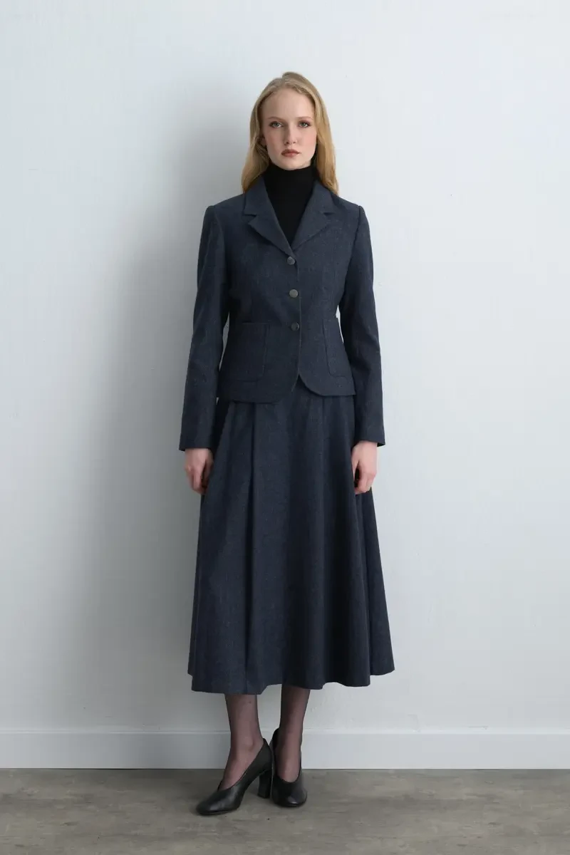 Yünlü dokusu sayesinde sıcak tutan bu ceket, bele oturan kesimiyle zarif bir silüet oluşturur. Lacivert tonu, zamansız ve sofistike bir şıklık sunar. Hem iş hayatında hem de günlük hayatta rahatlıkla tercih edilebilecek bir parçadır. Şıklık ve konforu bir araya getirerek stilinizi tamamlar.