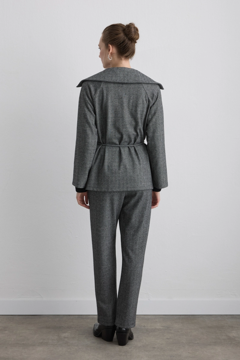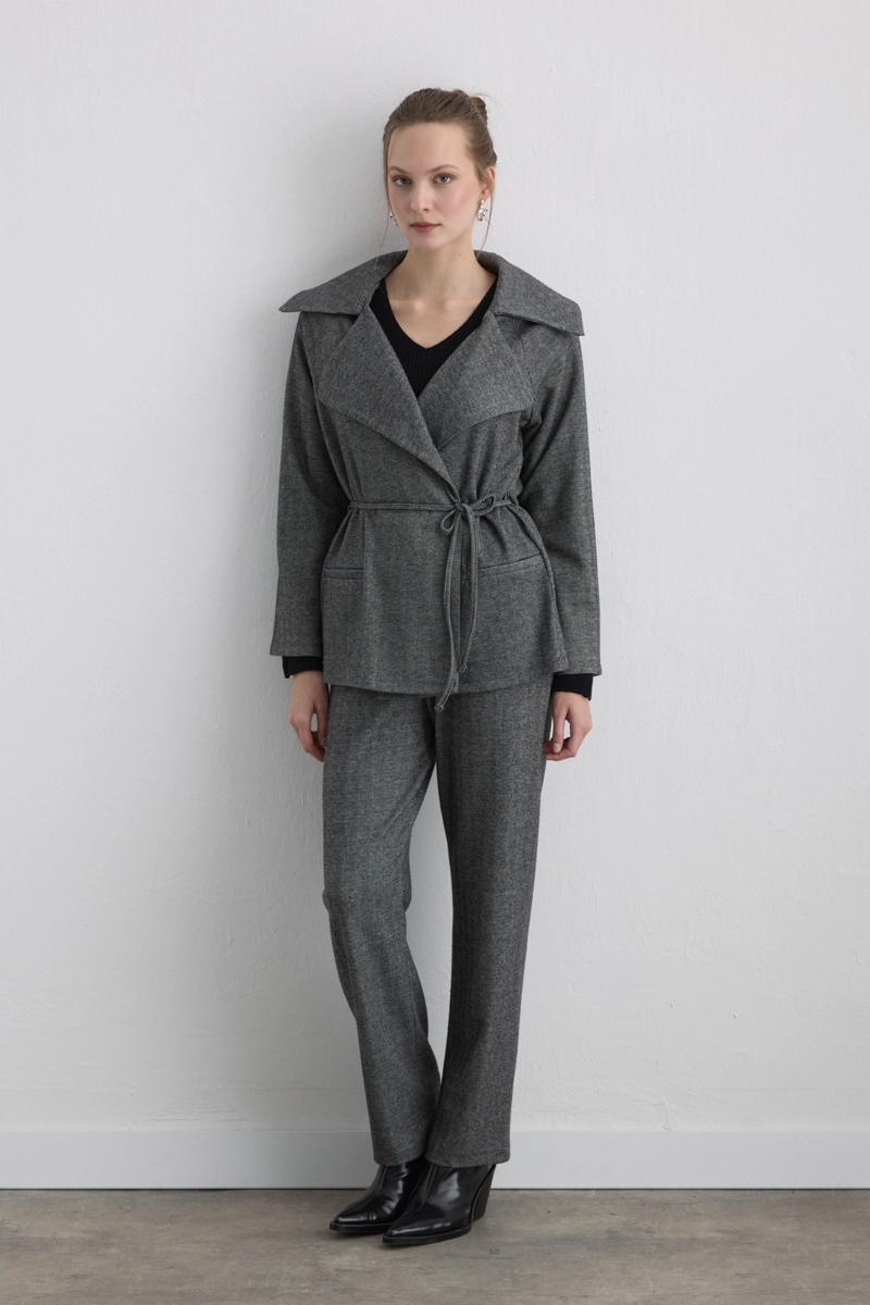 Beli Bağcıklı Balıksırtı Ceket - Gri