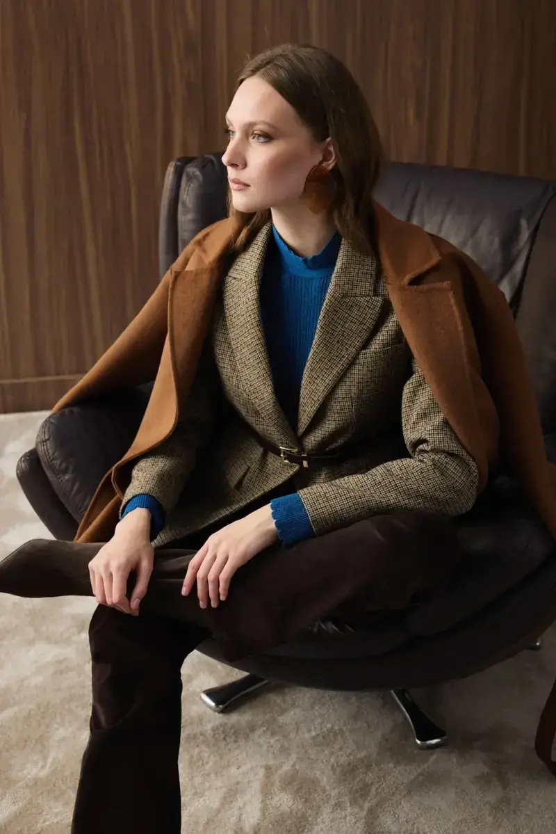 Sıcak tutan yünlü dokusu ve belden kemerli tasarımıyla öne çıkan Beli Kemerli Yünlü Ceket - Kahverengi, şıklığı ve konforu bir araya getirir. Günlük kombinlerden özel anlara kadar her stile uyum sağlayarak zarif bir görünüm sunar.