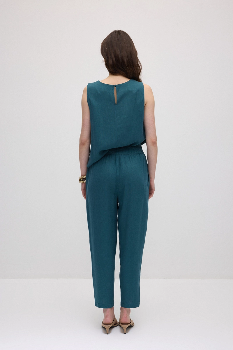 Beli lastikli tasarımı sayesinde konforlu bir kullanım sunar. Havuç kesimi modern ve dengeli bir siluet oluşturur. Günlük stil için rahat ve şık bir alternatif sunar. Hafif kumaşı gün boyu hareket özgürlüğü sağlar. Canlı tonu kombinlere enerjik bir dokunuş katar.