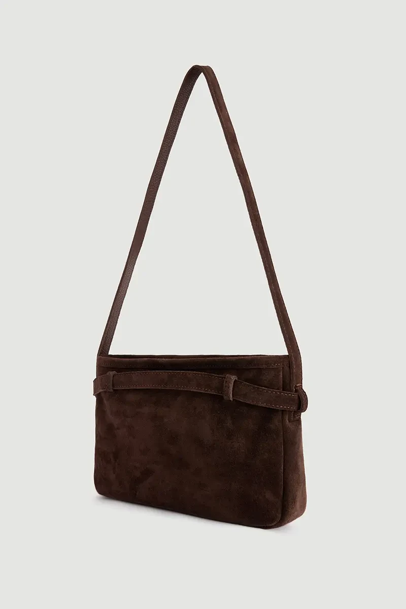 This bag, with its brown tone and suede texture, offers classic elegance with a modern touch thanks to the belt detail. Its medium size ensures practical use. Elegantly completes daily or work outfits. A functional accessory that adds a sophisticated touch to your style.