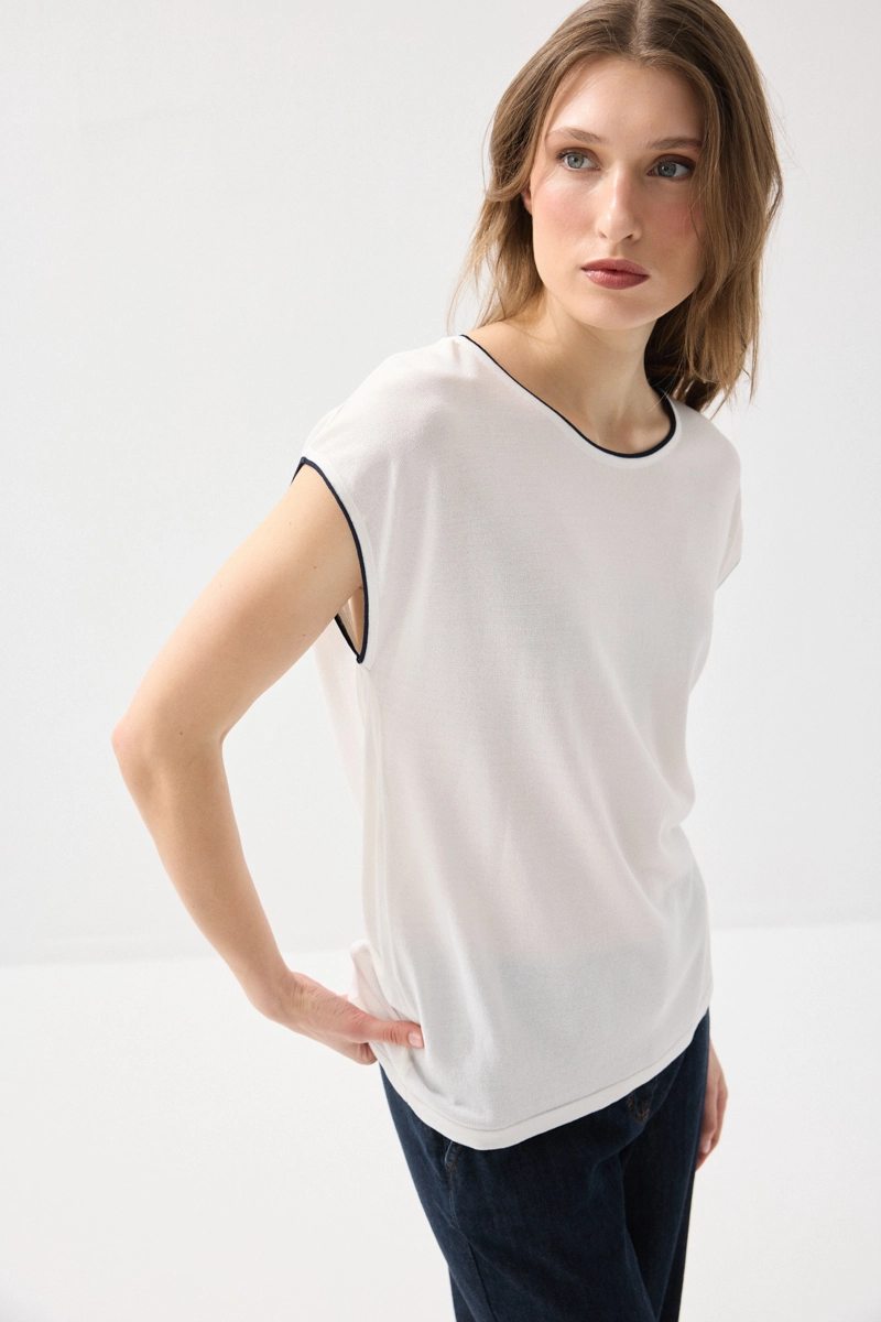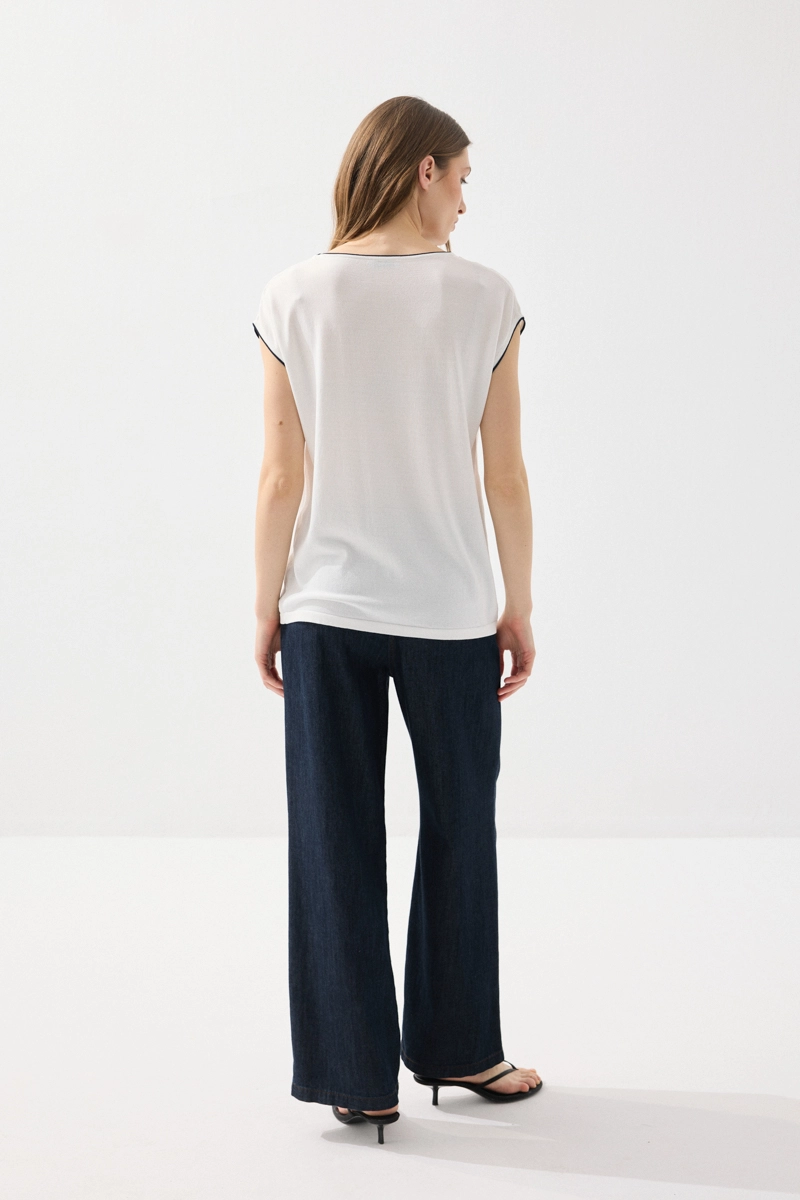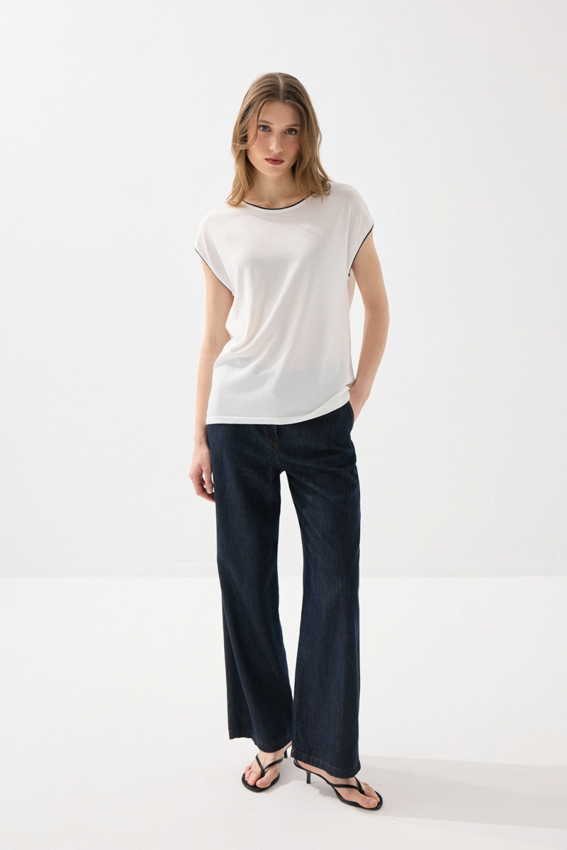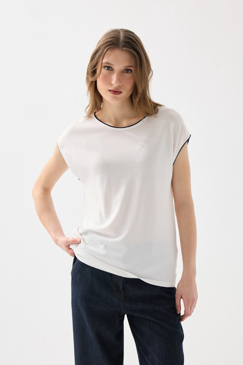 Merserize kumaşın ipeksi dokusu ile öne çıkan bluz, biyeli detaylarıyla şıklık kazanır. Düşük kol tasarımıyla rahat ve modern bir görünüm sunar. Beyaz rengiyle her kombinle kolayca uyum sağlar. Hafif yapısı sayesinde gün boyu ferah bir kullanım sunar. Zamansız ve şık bir gardırop parçasıdır.