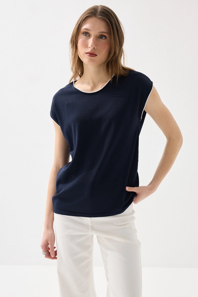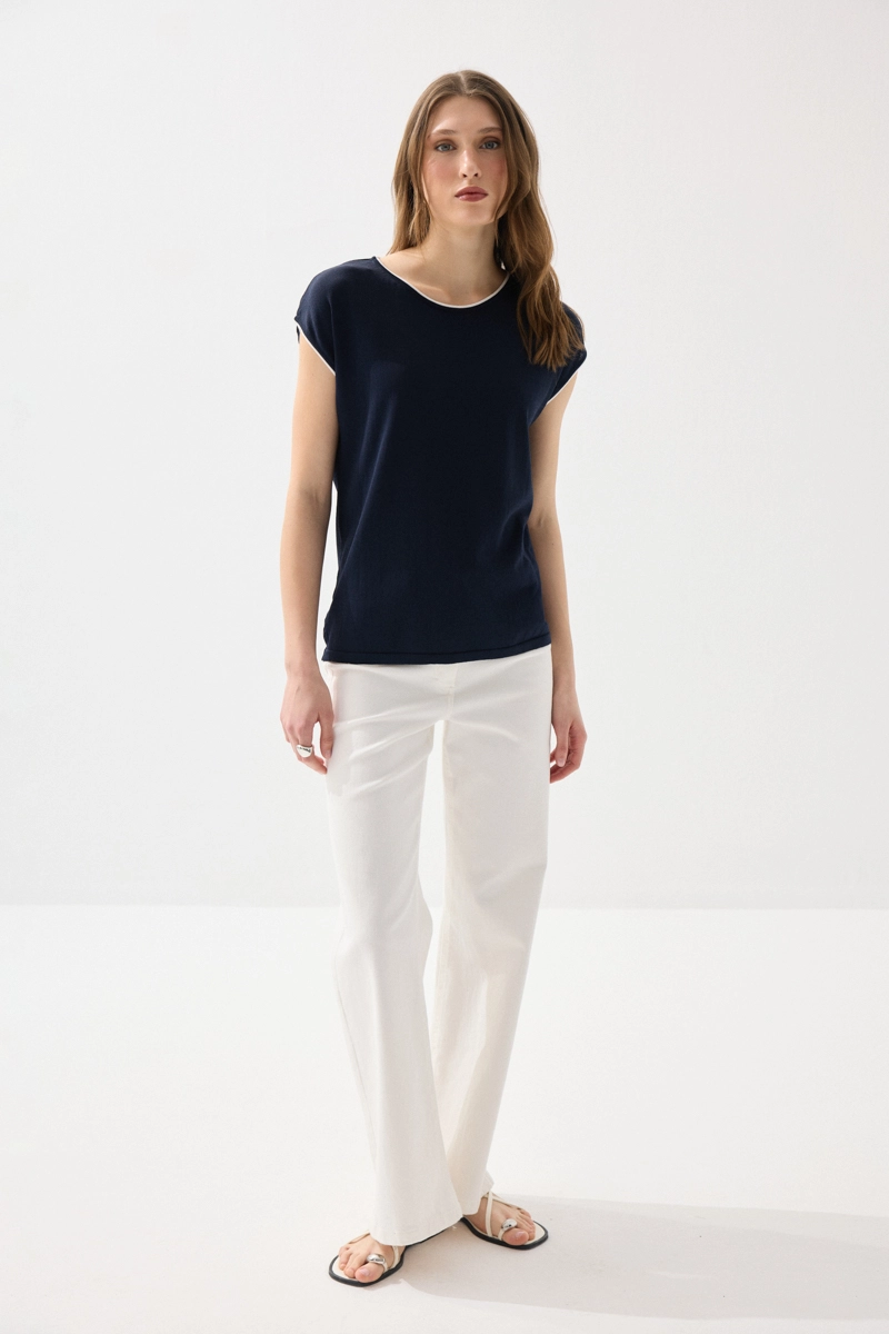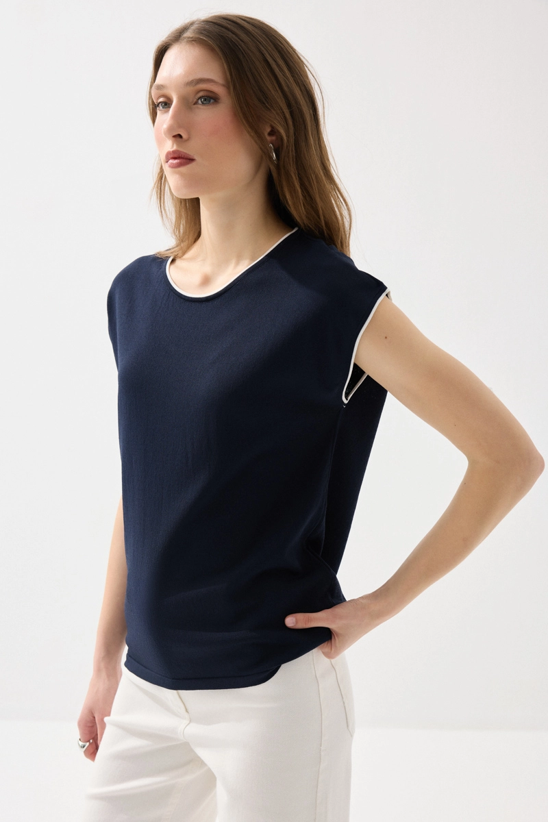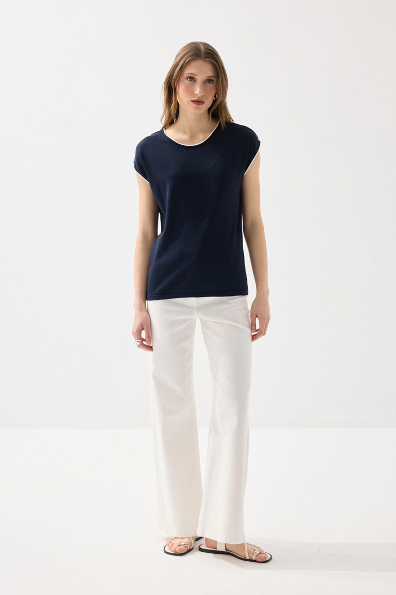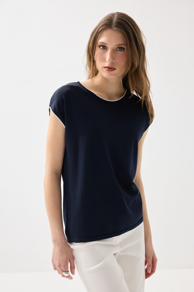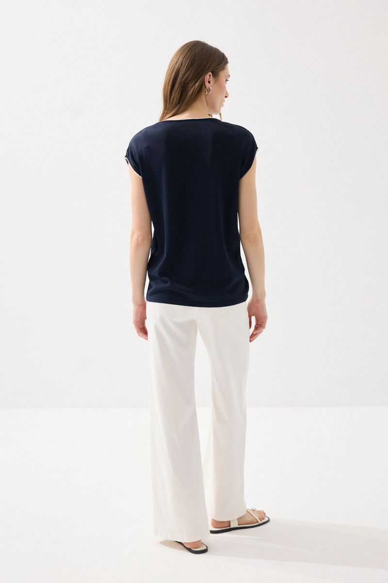 Merserize kumaşıyla hafif parlak ve pürüzsüz bir doku sunan bluz, biyeli detaylarıyla şık bir görünüm kazanır. Düşük kol kesimiyle rahat ve modern bir stil oluşturur. Lacivert rengiyle zamansız kombinler yapmanıza olanak tanır. Nefes alabilen yapısı sayesinde gün boyu konfor sağlar. Günlük ve ofis şıklığında tercih edilebilecek zarif bir parçadır.