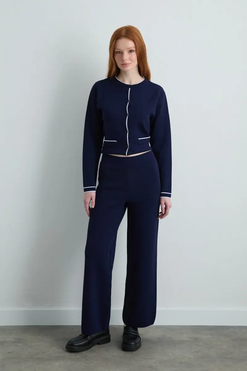 Biyeli Triko Hırka & Bol Paça Pantolon - Lacivert