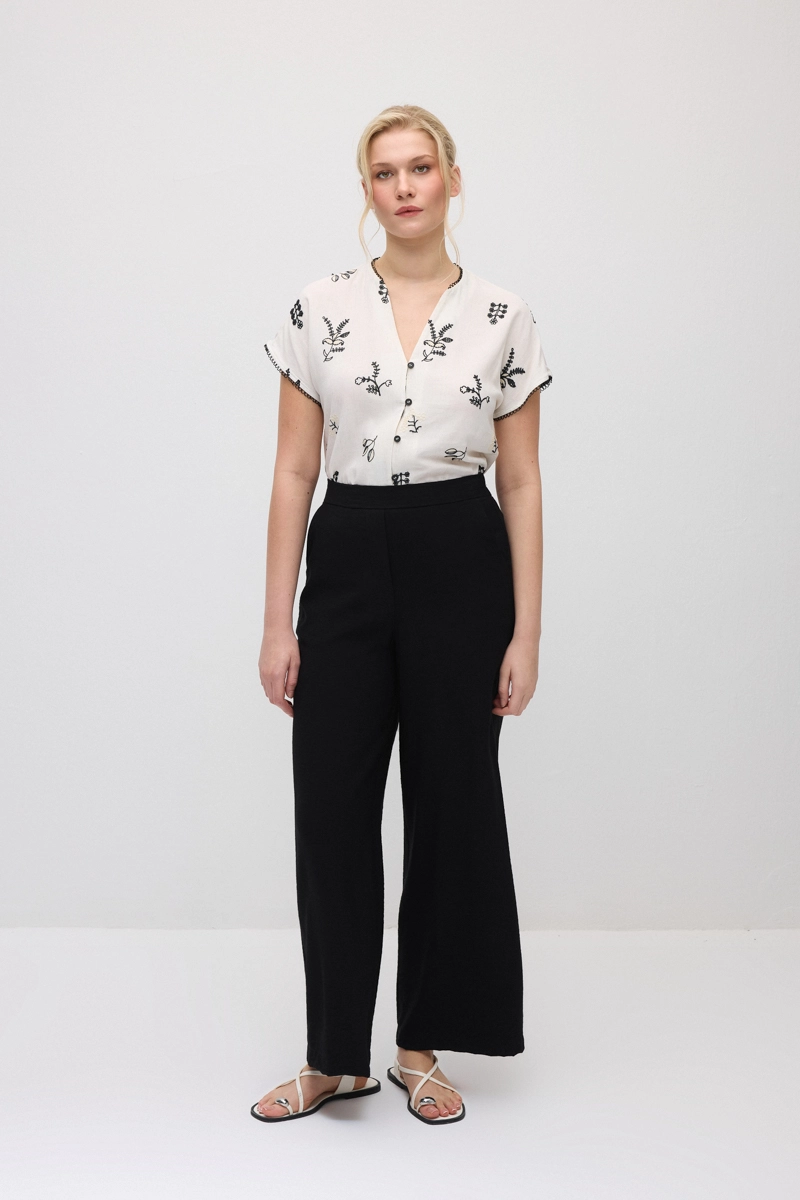 Elastic waist design provides all-day comfort. The wide-leg silhouette offers a modern and relaxed appearance. Lightweight viscose fabric ensures comfort with its flowing structure. An ideal alternative for daily style. Its timeless and simple design pairs easily with various combinations.