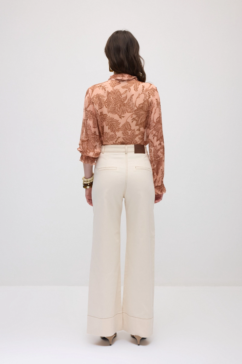 Bol paça kesimi modern ve rahat bir stil sunar. Denim kumaşı dayanıklı ve konforlu bir yapı sağlar. Ekru tonu sade ve doğal bir görünüm oluşturur. Günlük ve şehir stiline uyum sağlar.
