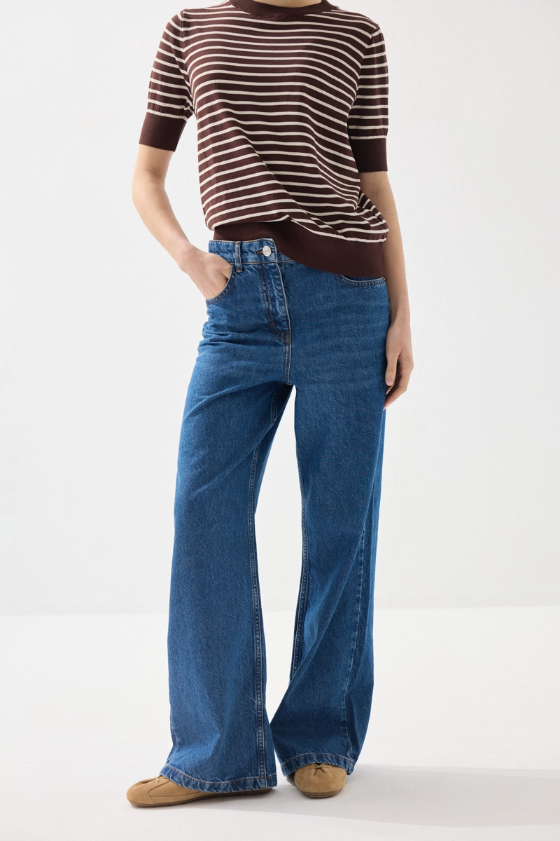 Rahat kesimiyle gün boyu konfor sunan bu tasarım, modern bir görünüm sağlar. Denim dokusu dayanıklı ve zamansız bir stil oluşturur. Bol paça kesimi, hareket özgürlüğü sunar. Lacivert tonuyla farklı kombinlere kolayca uyum sağlar. Günlük stilin vazgeçilmez parçalarından biridir.