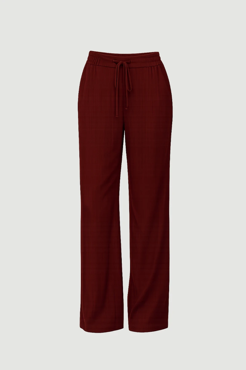 Krinkıl dokusuyla hareketli ve modern bir görünüm sunar. Bol paça kesimi rahat ve zarif bir siluet oluşturur. Hafif yapısı sayesinde gün boyu konfor sağlar. Günlük stil için şık ve konforlu bir alternatif sunar. Güçlü tonu kombinlere sofistike bir dokunuş katar.