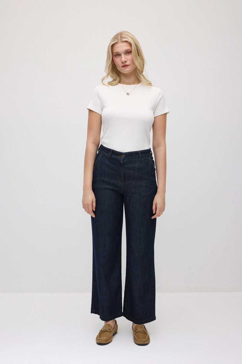 Bol paça kesimiyle rahat ve modern bir siluet sunar. Tencel denim kumaşı sayesinde hafif ve konforlu bir kullanım sağlar. Günlük kombinlerde stil sahibi bir görünüm oluşturur. Farklı üst parçalarla kolayca uyum sağlayan zamansız bir tasarıma sahiptir. Modern ve sade duruşuyla şehir stiline uyum sağlar.