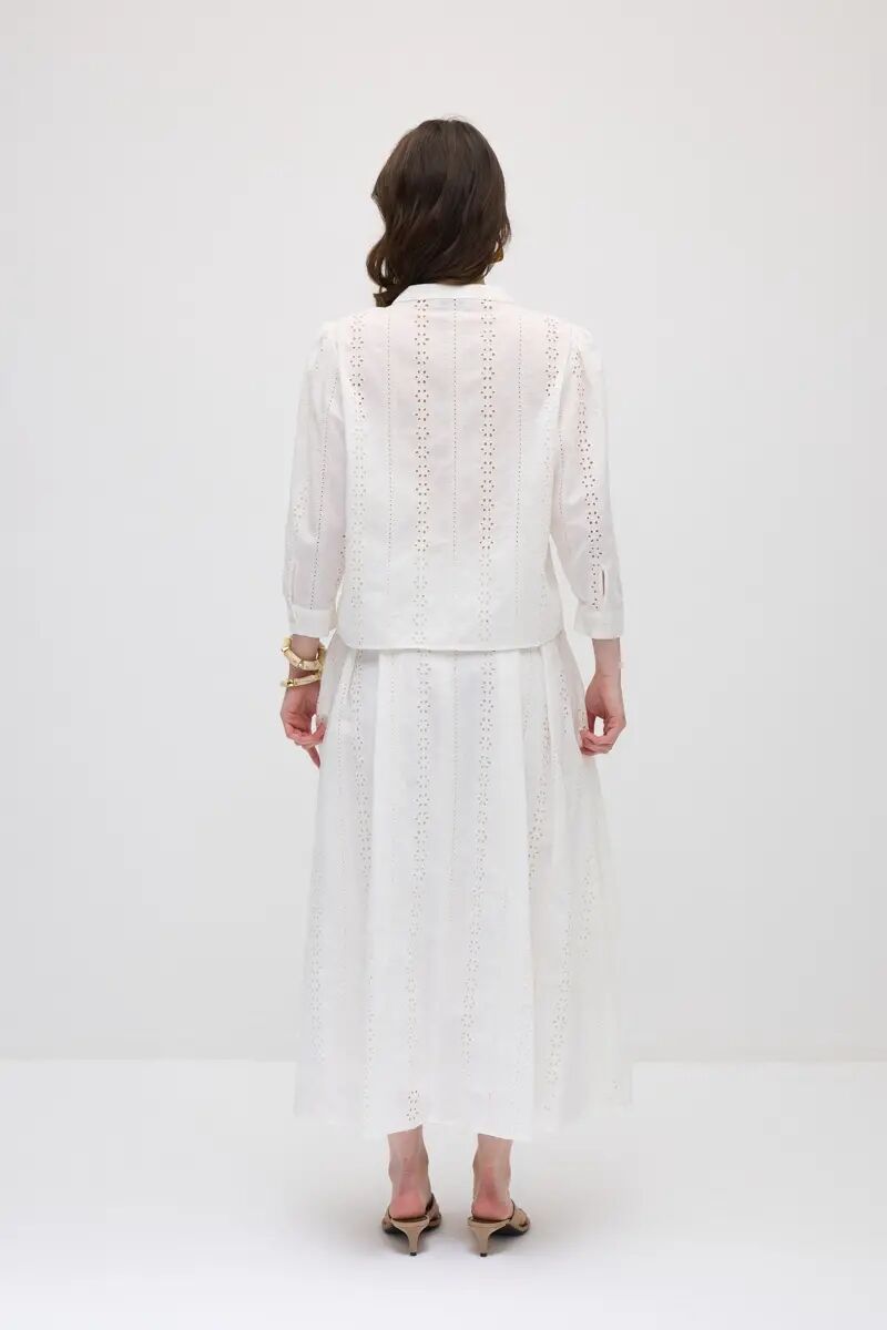 Brode Pamuk Gömlek & Pilikaşeli Koton Etek Takım - Beyaz
