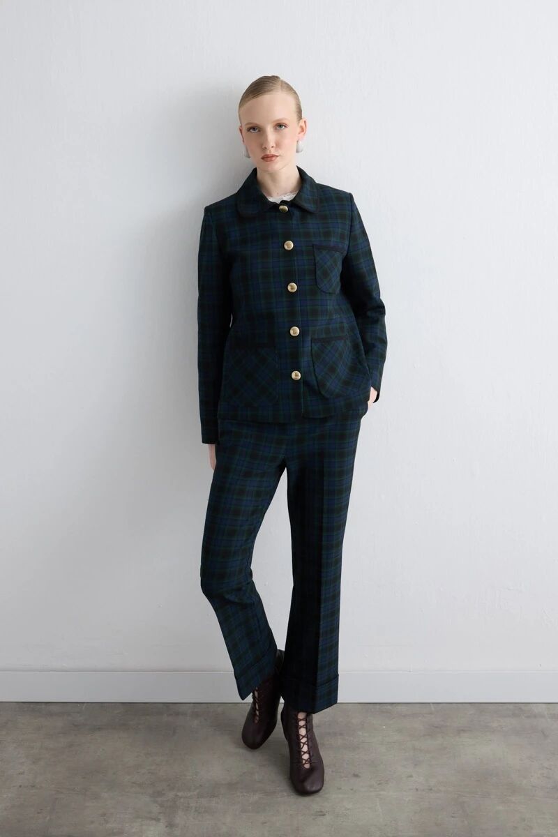Kadife Yakalı Minik Ekose Ceket & Boru Paça Pantolon - Lacivert Takım