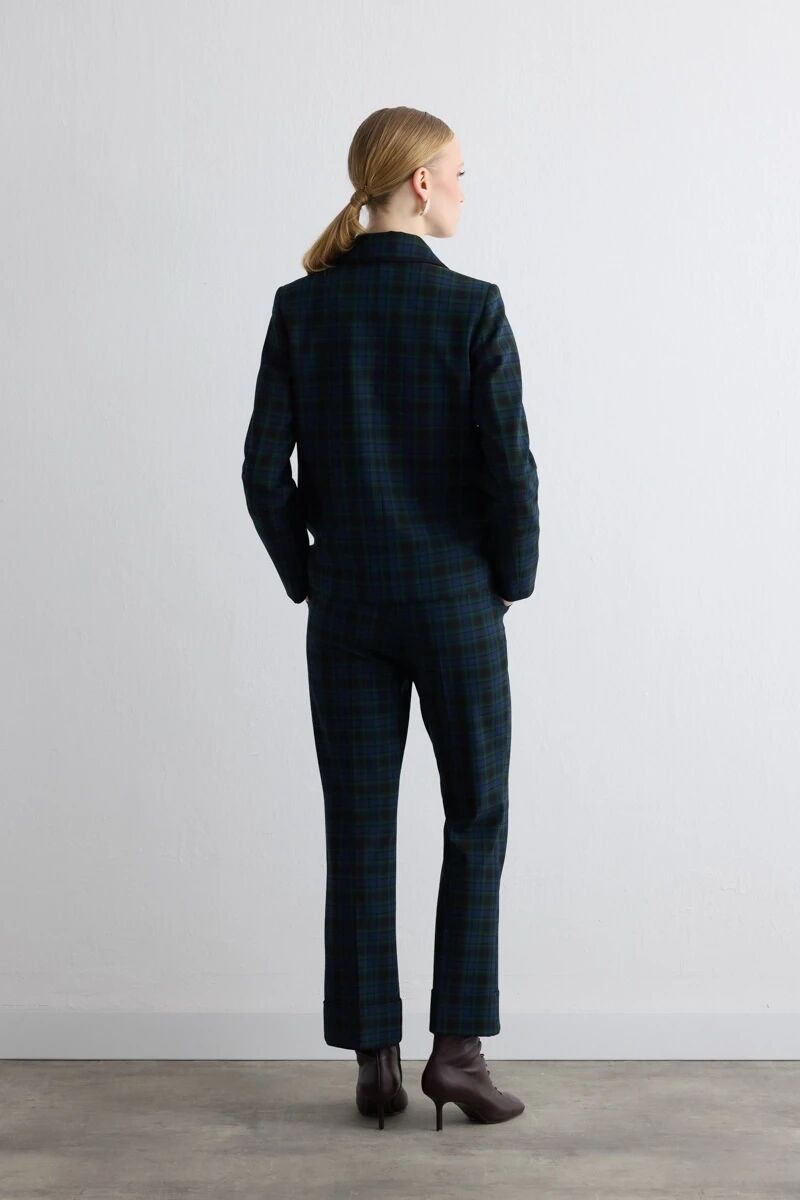 Cepli Ekose Ceket & Duble Paça Pantolon - Lacivert Takım