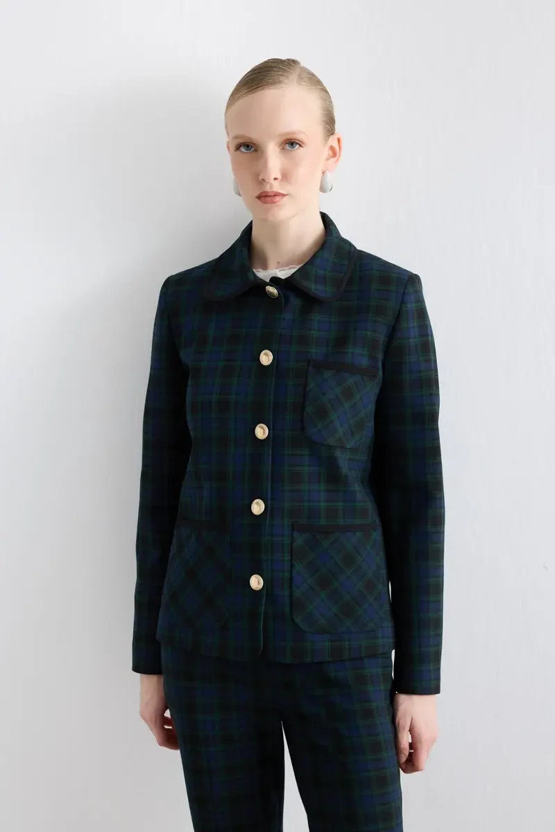 Ekose deseni klasik ve modern tarzı birleştirir. Cepli tasarımı hem kullanışlı hem şık bir detaydır. Lacivert rengi farklı alt parçalarla kolay kombinlenir. Hafif yapısı rahat bir kullanım sunar. Günlük ve ofis kombinlerinde öne çıkar.