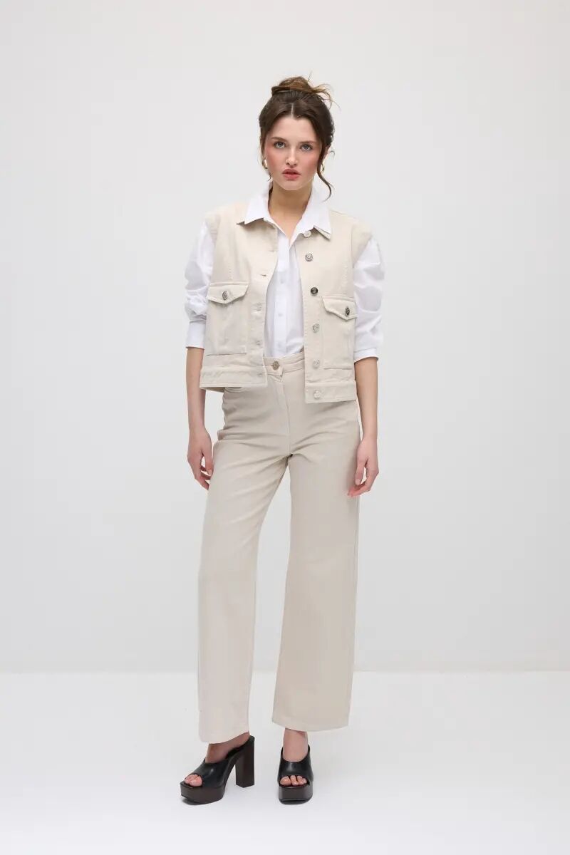 Cepli Denim Yelek - Bej