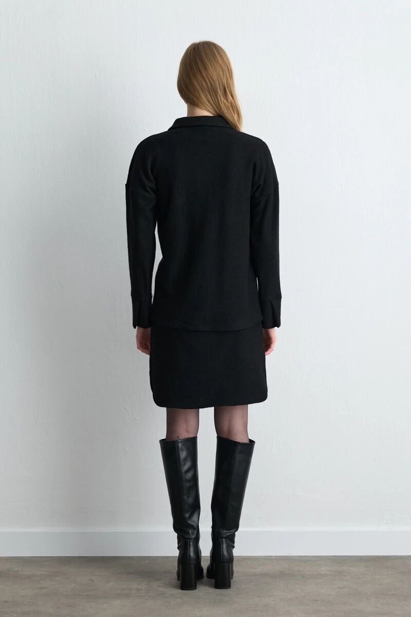 Cepli Yün Gömlek Ceket & Mini Etek - Siyah