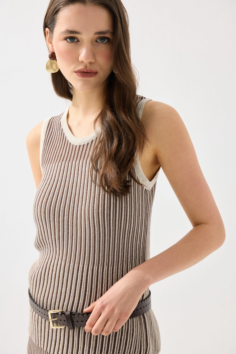 Yumuşak viskon triko dokusuyla konforlu bir kullanım sunan atlet, çift renkli tasarımıyla dikkat çeker. Hafif yapısı sayesinde sıcak havalarda ideal bir tercih olur. Kahverengi tonlarıyla doğal ve şık bir görünüm sağlar. Esnek yapısı vücuda uyum sağlayarak rahat bir kullanım sunar. Günlük kombinlerin tamamlayıcı parçasıdır.