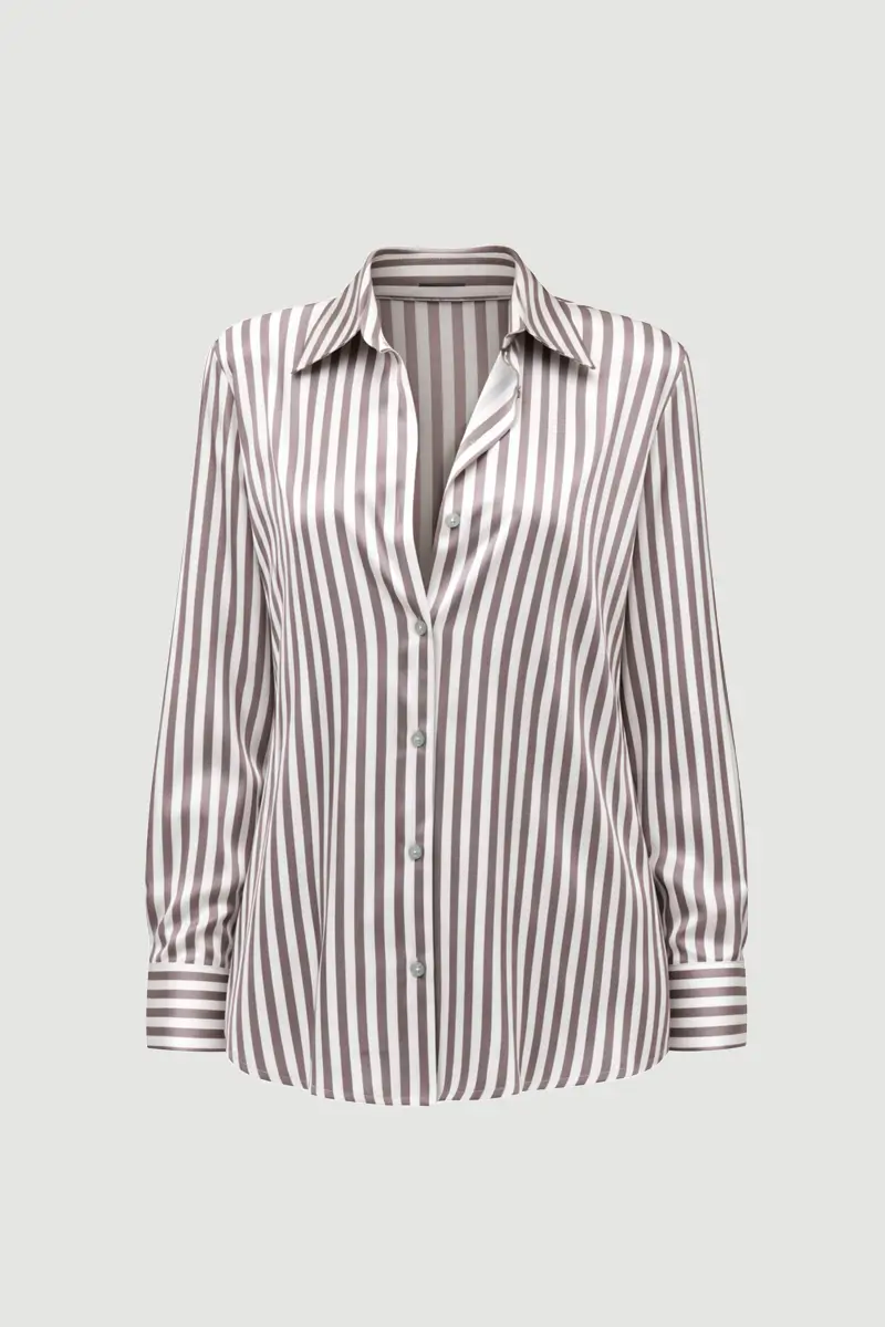 Akışkan saten dokusu ve ince çizgi deseniyle zarif ve modern bir görünüm sunar. Pürüzsüz yüzeyi sayesinde gün boyu konforlu bir kullanım sağlar. Şık ve sofistike duruşu farklı kombinlerle kolayca uyum sağlar. Günlük stilin yanı sıra ofis kombinlerinde de tercih edilebilecek zarif bir alternatiftir. Zamansız tasarımıyla gardırobun öne çıkan parçalarından biri olur.