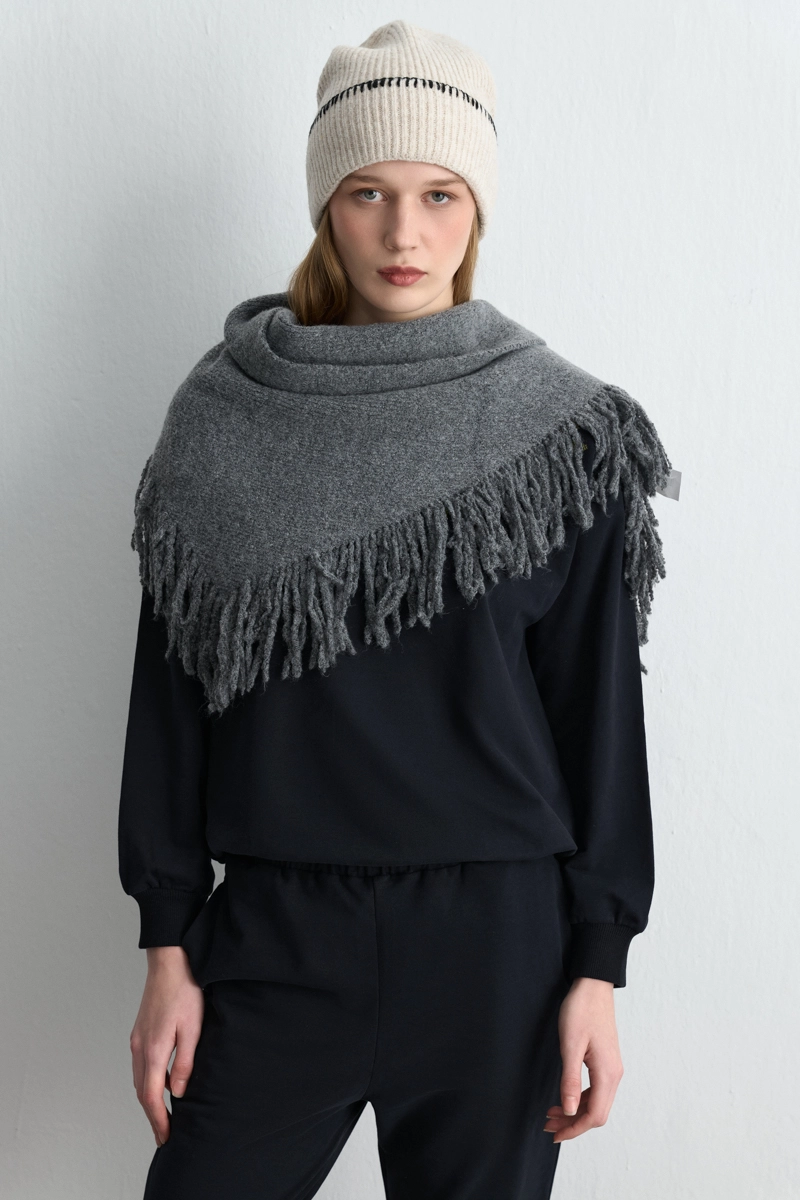 Bej tonu sade ve doğal bir görünüm kazandırır. Çoban dikişleri el işçiliği havası vererek özgün bir tarz oluşturur. Yumuşak dokusu konforlu bir kullanım sağlar. Soğuk havalarda sıcak tutarken modern bir detayla şıklık sunar. Günlük kombinlerde zarif bir tamamlayıcıdır.