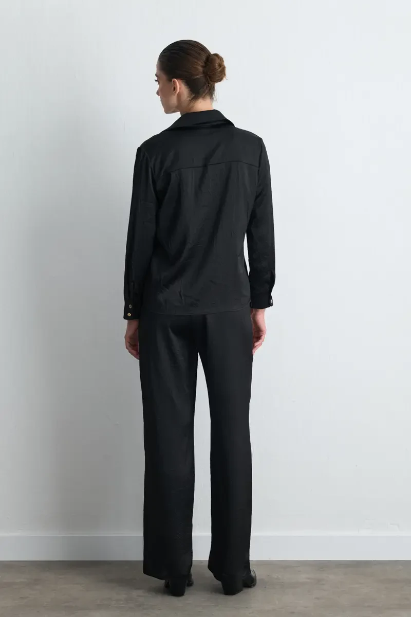 The black tone is a classic base that suits any style. Crinkle satin fabric provides shine and luxurious feel. Minimal cut ensures modern and comfortable wear. Completes elegance in daily or special occasion outfits. Highlights your style with refined details.