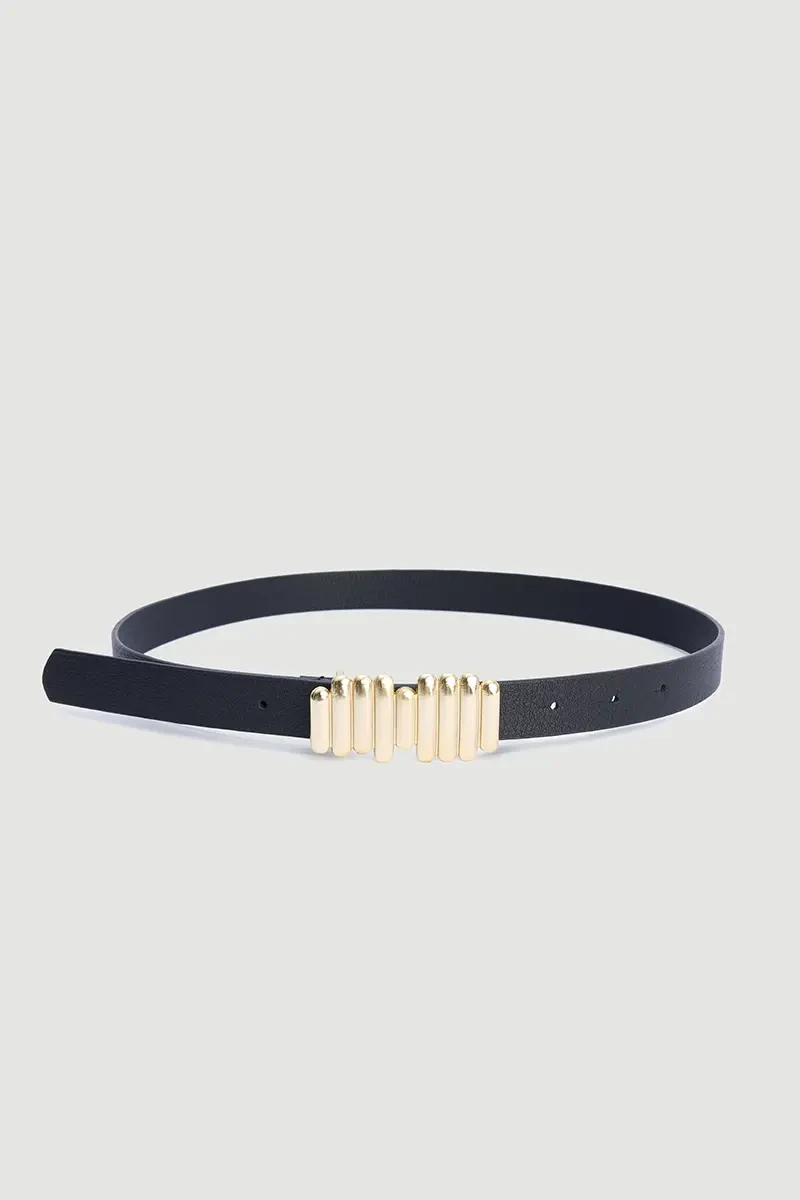 Minimal çizgilerle tasarlanmış bu siyah kemer, modern tarzı zarafetle buluşturuyor. Çubuk detayları ile sade ama dikkat çekici bir görünüm sunar. Hem elbiselerle hem de pantolonlarla rahatça kombinlenebilir. Günlük ya da şık kombinlerde tamamlayıcı bir aksesuar olarak öne çıkar.