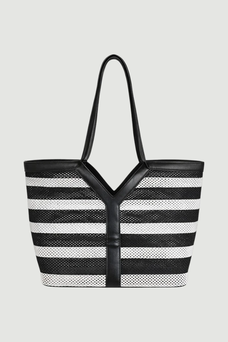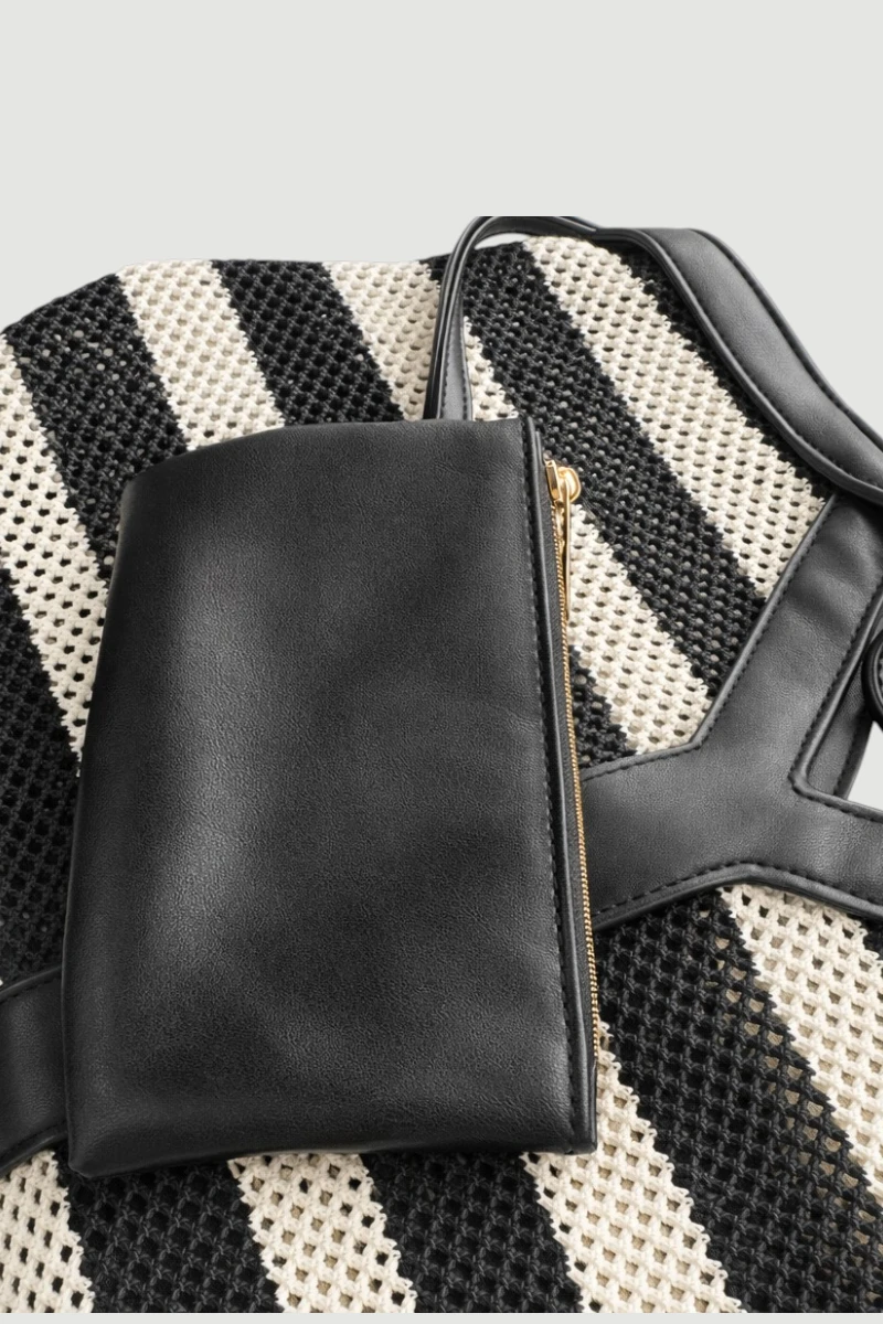 Fonksiyonel tasarımıyla pratik kullanım sunan bu parça, modern stilin güçlü bir temsilcisidir. File ve hasır dokunun birleşimiyle hafif ve kullanışlı bir yapı sağlar. İç kısmındaki cüzdan detayı, eşyalarınızı düzenli taşımanıza yardımcı olur. Siyah tonuyla her kombine kolayca uyum sağlar. Günlük şehir stilinde rahatlıkla tercih edilebilir.