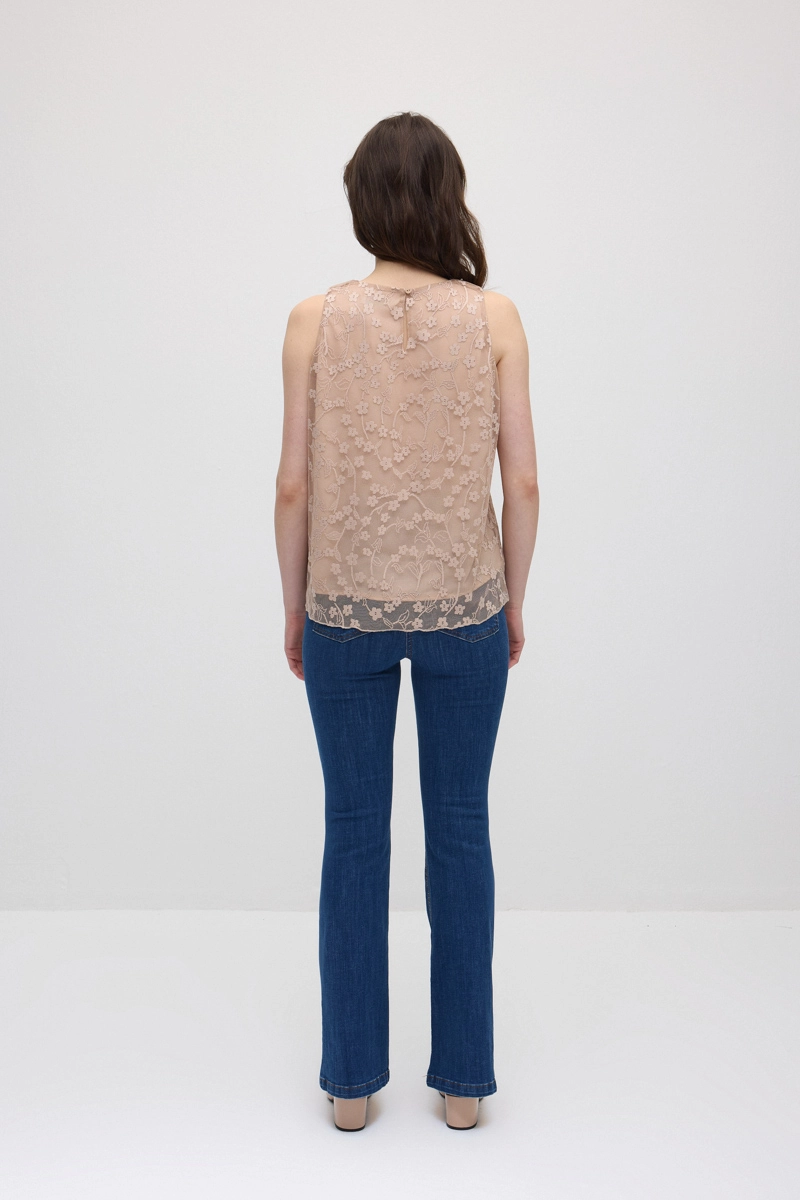 Dantel detaylarıyla zenginleşen tasarımı zarif ve feminen bir görünüm sunar. Hafif kumaşı sayesinde gün boyu konfor sağlar. Sade ve modern formu farklı parçalarla kolayca kombinlenebilir. Günlük stilin yanı sıra şık kombinlerde de tercih edilebilecek bir alternatiftir. Zamansız görünümüyle gardırobun tamamlayıcı parçalarından biridir.