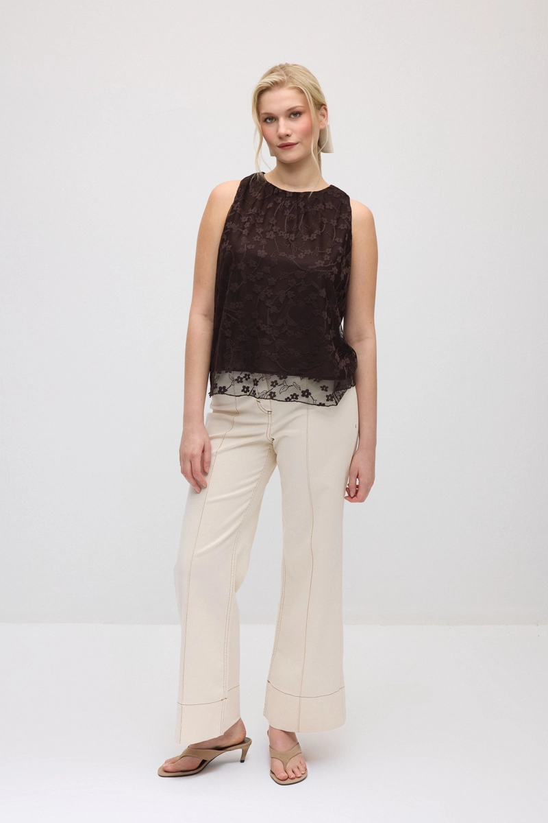 Dantel detaylarıyla tasarıma zarif ve romantik bir dokunuş kazandırır. Hafif yapısı sayesinde gün boyu konforlu bir kullanım sunar. Modern ve sade kesimi farklı kombinlerle kolayca uyum sağlar. Günlük stil ve şık kombinlerde rahatlıkla tercih edilebilir. Sofistike tonu stilinize zarif bir görünüm kazandırır.