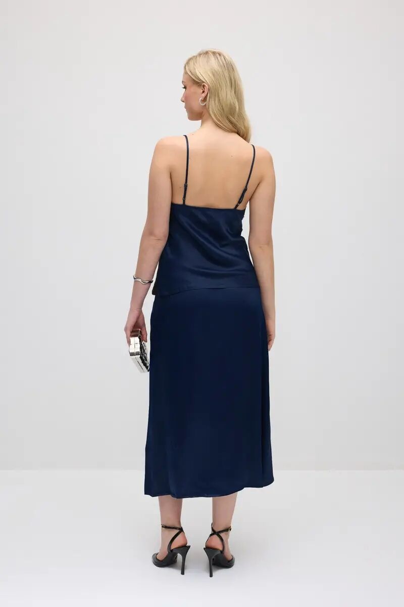 Aksesuarlı Kolsuz Bluz & Yandan Tokalı Uzun Yırtmaçlı Etek - Lacivert