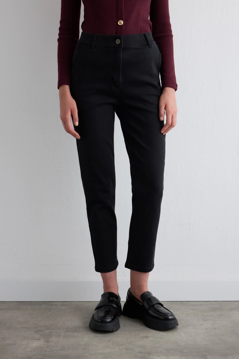 Mom kesimi rahat ve salaş bir siluet sunar. Siyah denim her üstle uyum sağlar. Yumuşak yapısı gün boyu konfor verir. Günlük kombinler için ideal bir seçenek oluşturur. Minimal detayları modern bir hava katar.