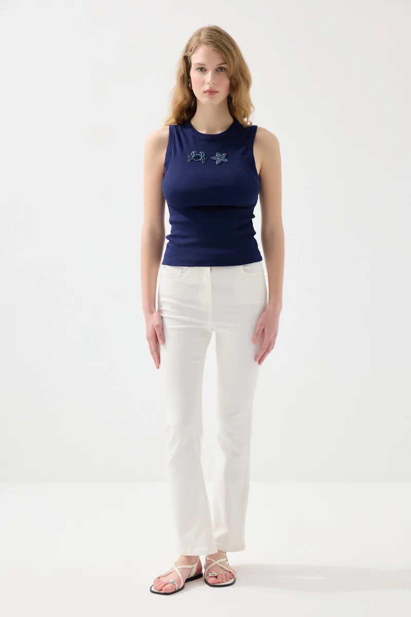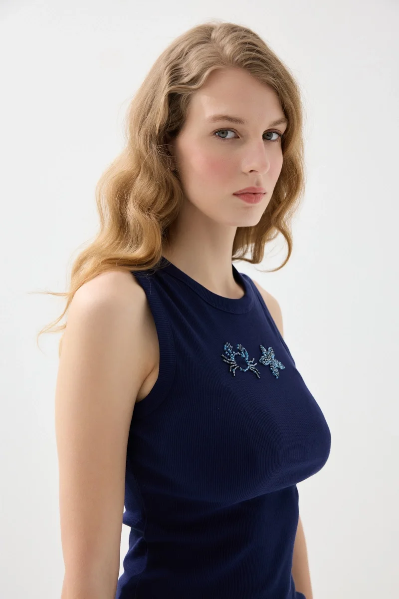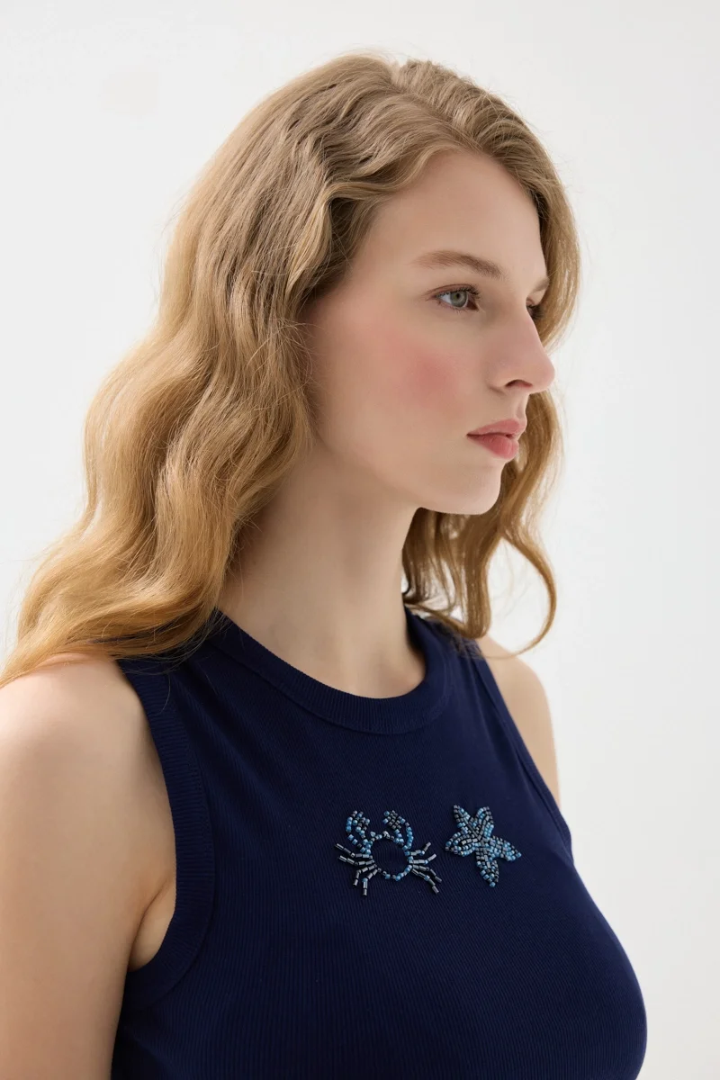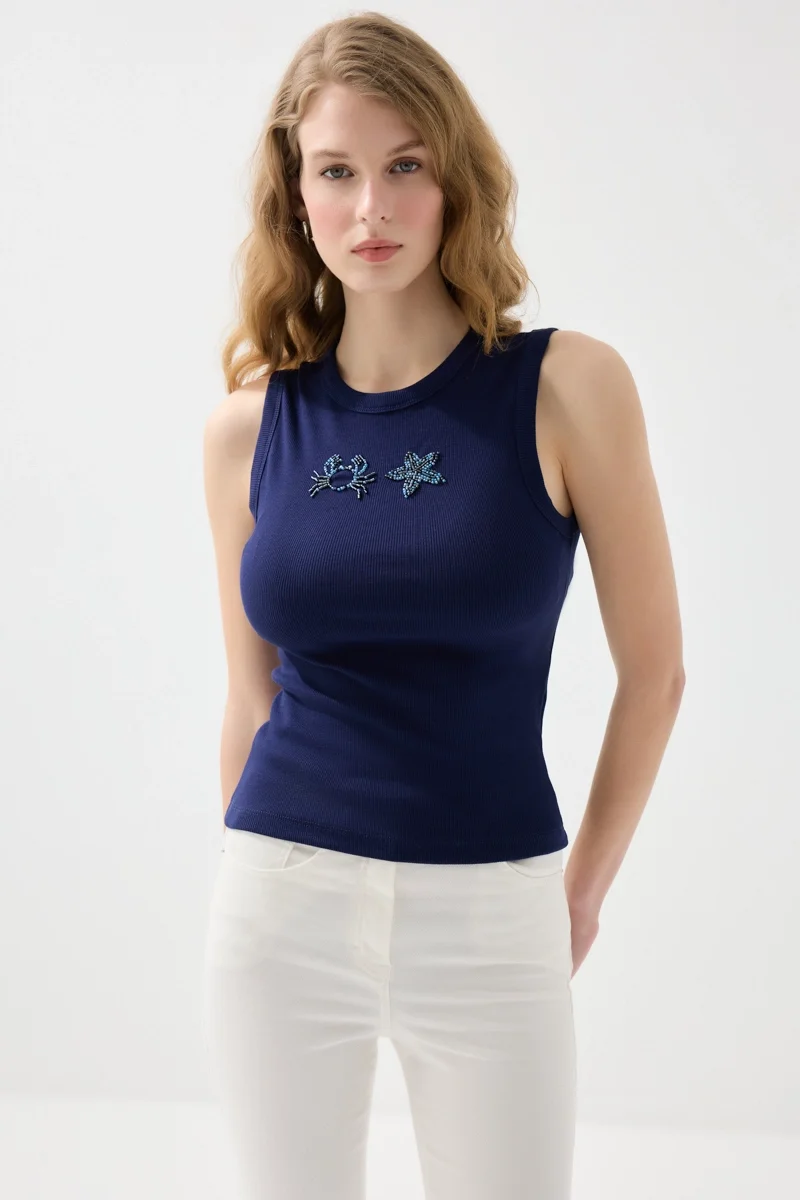 Ribana pamuk dokusuyla esnek ve konforlu bir kullanım sunan atlet, deniz temalı tasarımıyla enerjik bir görünüm kazandırır. Bisiklet yaka detayıyla sade ve kullanışlıdır. Lacivert rengiyle şık ve spor kombinler oluşturabilirsiniz. Günlük kullanım için ideal bir parçadır. Yaz stiline dinamik bir dokunuş katar.