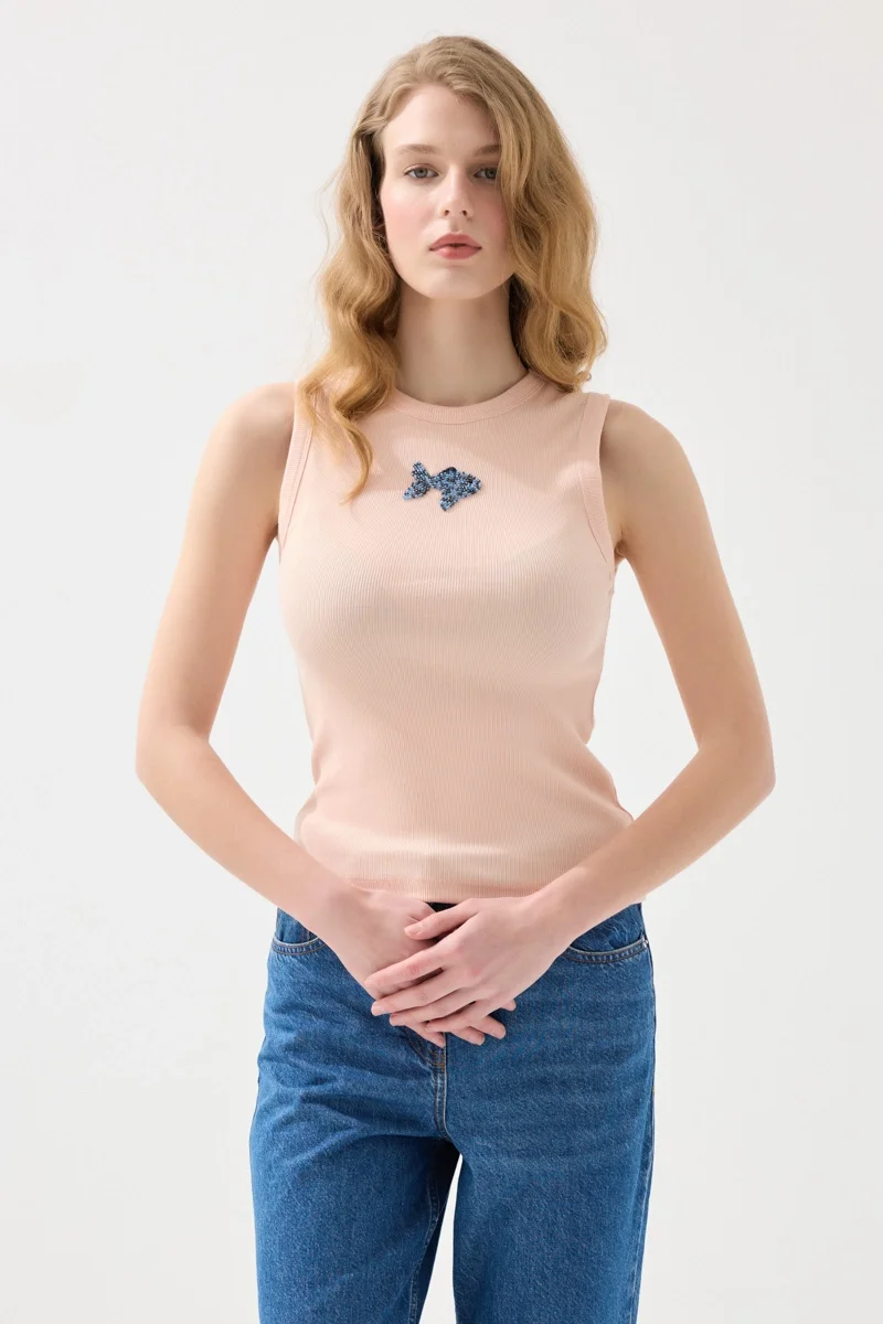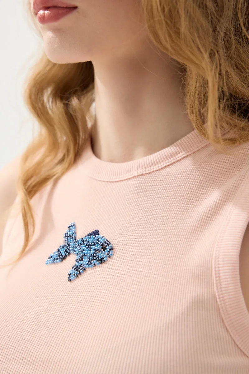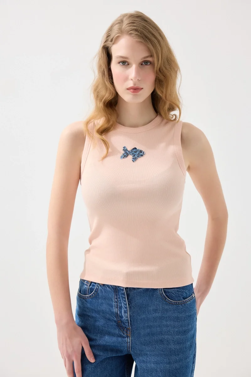 Ribana pamuk dokusuyla esnek ve konforlu bir kullanım sunan atlet, deniz temalı tasarımıyla enerjik bir görünüm kazandırır. Bisiklet yaka detayıyla sade ve kullanışlıdır. Pudra rengiyle zarif ve yumuşak tonlarda kombinler oluşturabilirsiniz. Günlük kullanım için ideal bir parçadır. Yaz stiline dinamik bir dokunuş katar.
